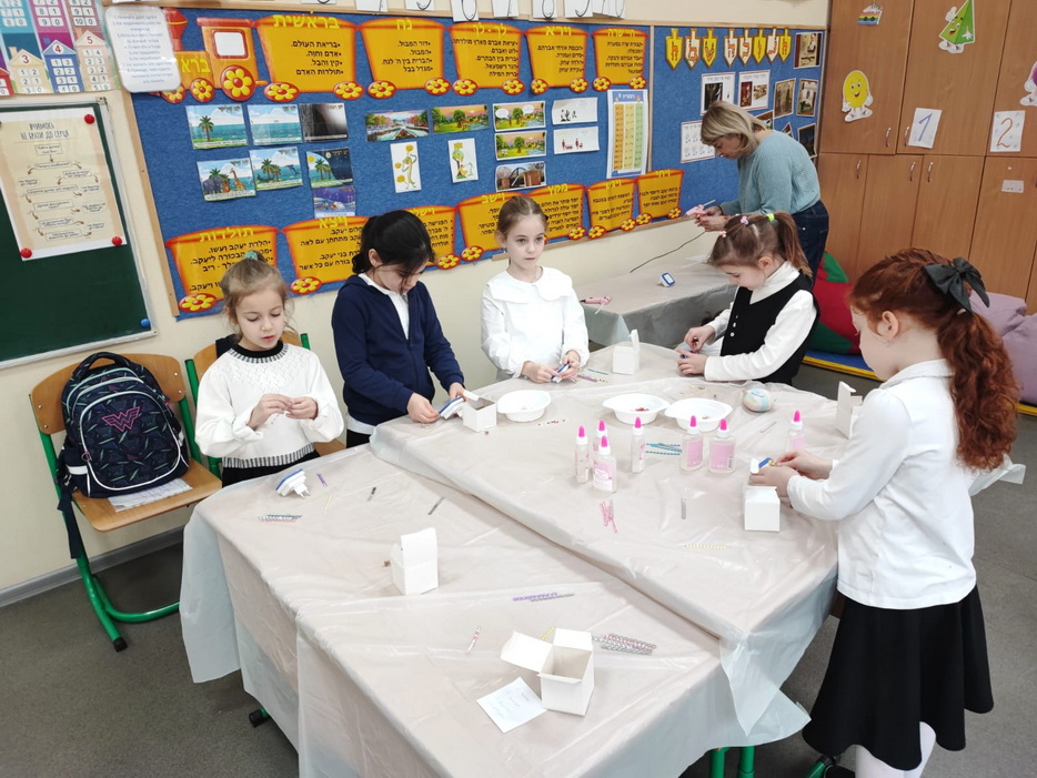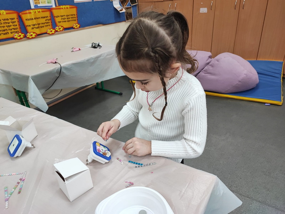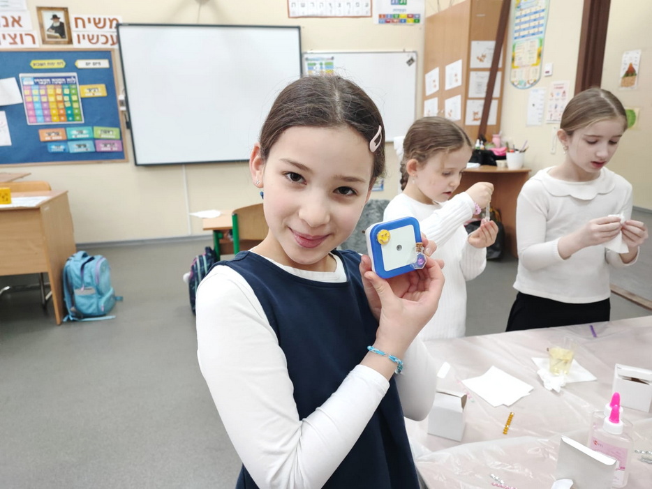 После завтрака началось увлекательное путешествие по четырем станциям. На каждой станции ученицы изучали главы Тании в творческой и доступной форме. Они узнали, как усмирить животную душу, как помочь Б-жественной душе выполнить ее миссию, и как служить Вс-вышнему с любовью. Одним из заданий было украшение светильника бусинами, каждая из которых символизировала понятия из Тании: радость, любовь к ближнему, масло – как символ внутренней части Торы.