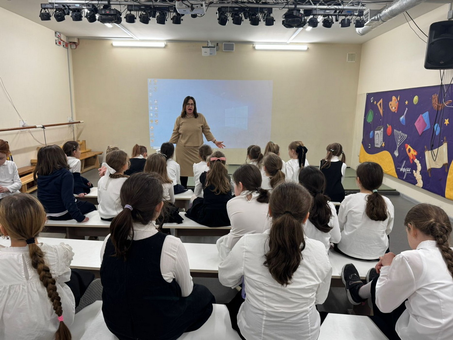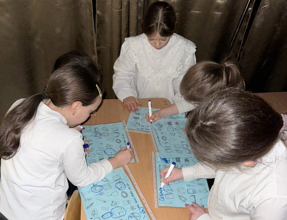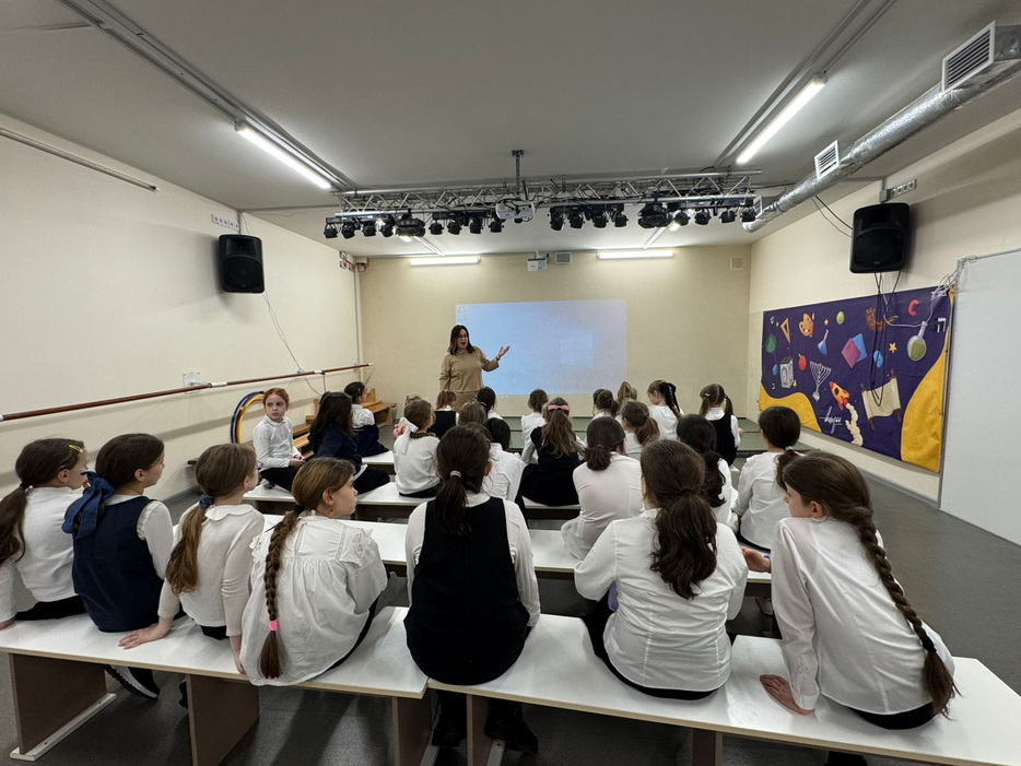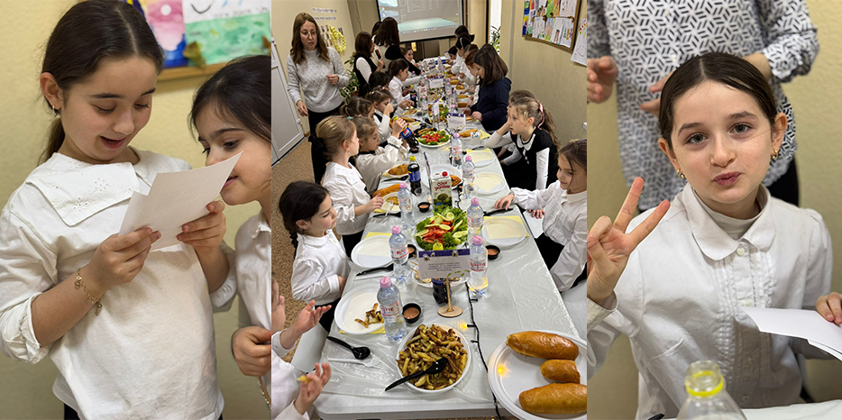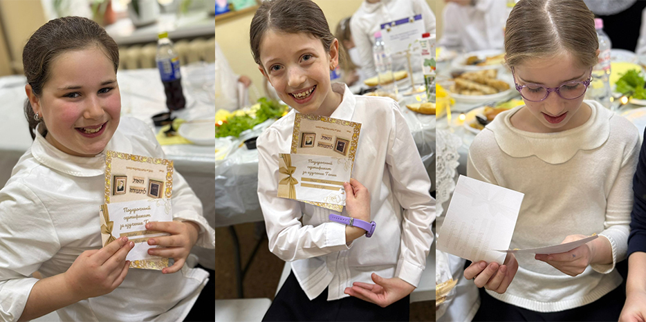 Следующим этапом программы стало собрание в спортзале, где девочки посмотрели видео и послушали мудрые слова и рассказы гостьи Малки Фельдман. Затем прошла увлекательная игра, связанная с историей заключения и освобождения Алтер Ребе. Девочки разгадывали загадки, находили предметы-отгадки, объясняли их связь с историей Ребе, и завершали задания веселыми танцами.