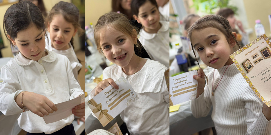 Кульминацией программы стал праздничный фарбренген. Во время фарбренгена девочки пели нигуним, смотрели видеообращение Ребе и радовались вручению грамот и призов за выученные строчки Тании.