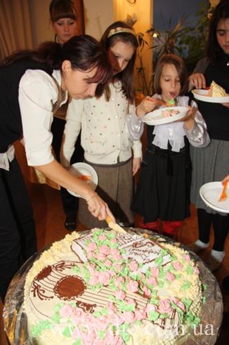 Праздник продолжился за накрытыми столами и кульминацией угощения стал великолепный именинный торт, шедевр кондитерского искусства.