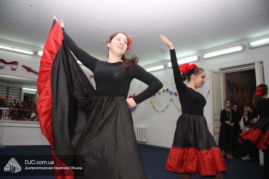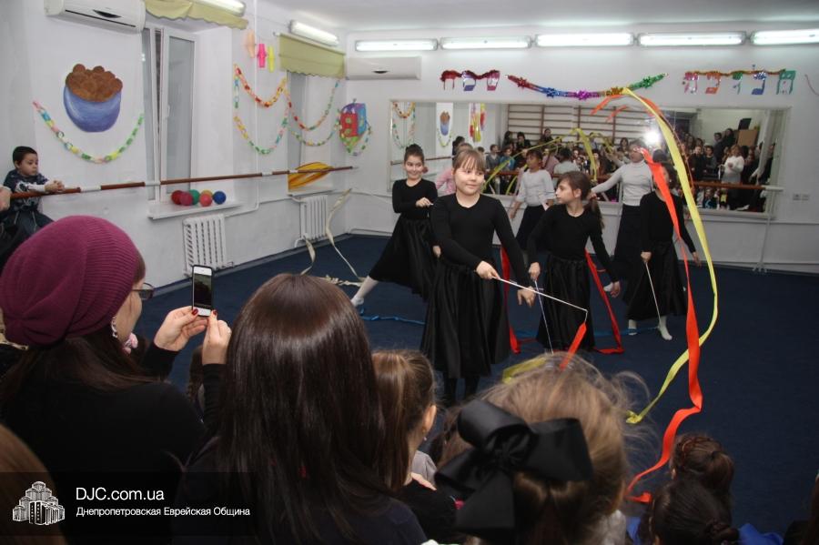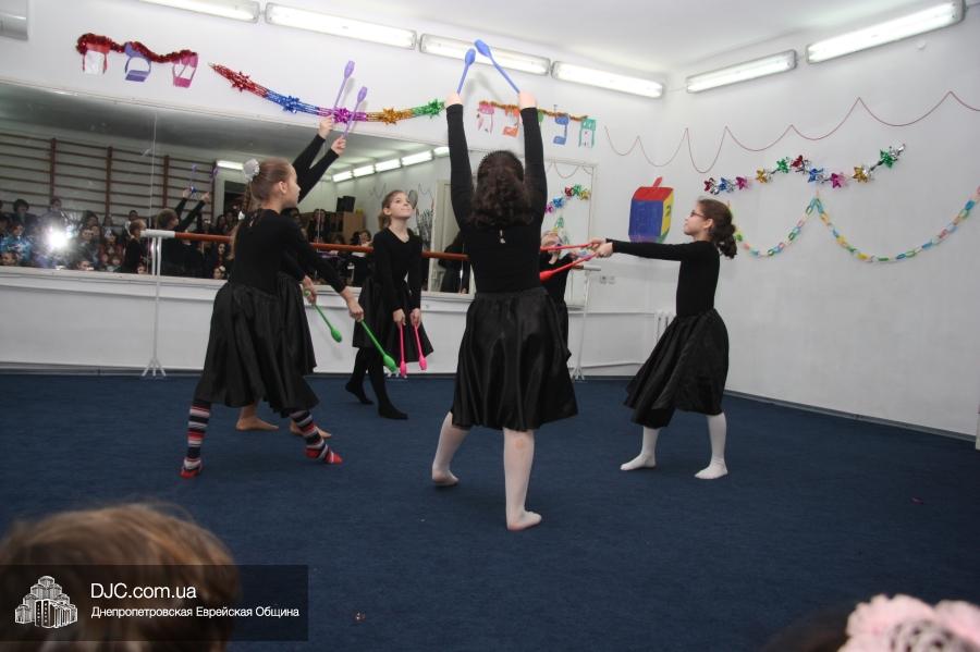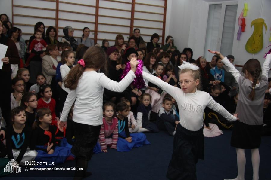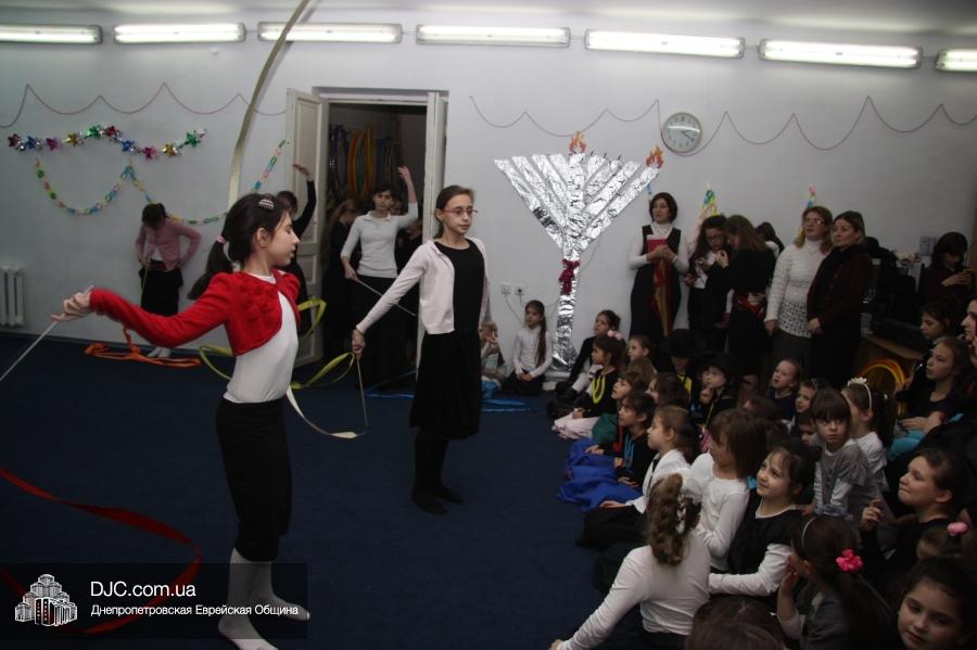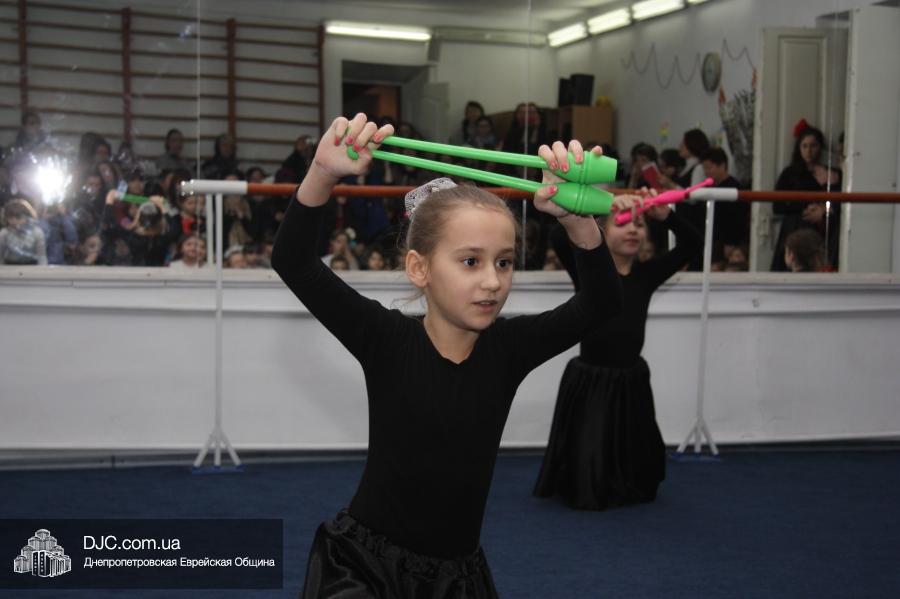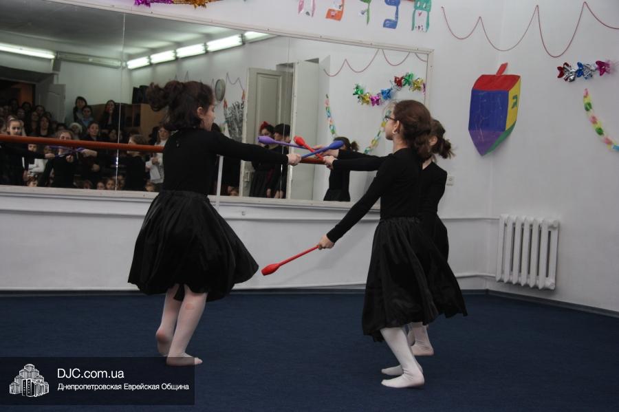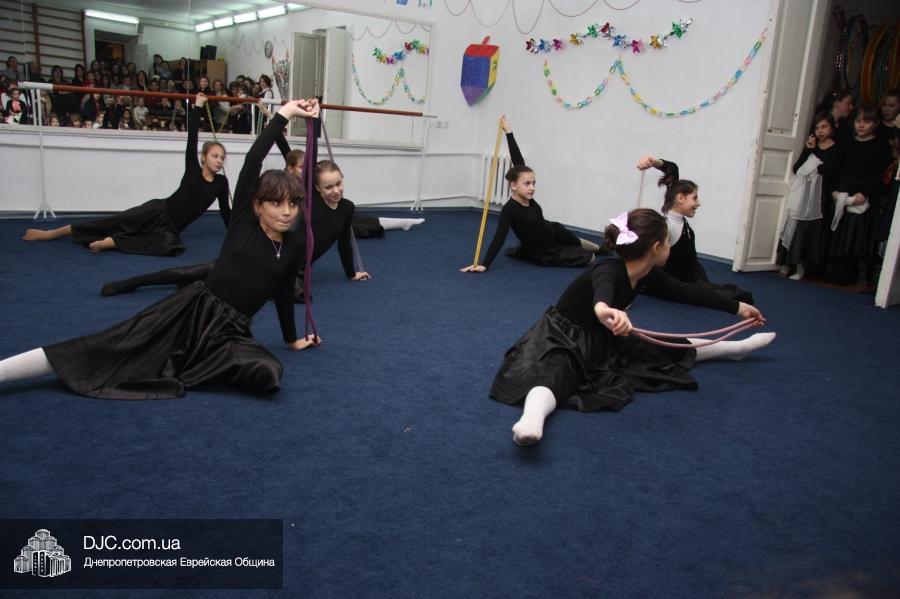 Затем все участники и гости марафона перешли в спортзал, где их ожидал большой праздничный концерт, во время которого ученицы махона показали свои разносторонние артистические таланты. Открыли концерт девочки из второго класса, которые торжественно вынесли на середину сцены ханукию, вокруг которой они исполнили еврейский танец. Неотъемлемые атрибуты Хануки – свет свечей ханукии и севивоны – символично изобразили третьеклассницы, исполнившие танец «Огонек», и самые маленькие ученицы махона – первоклассницы, которые выступили с номером «Севивончики».