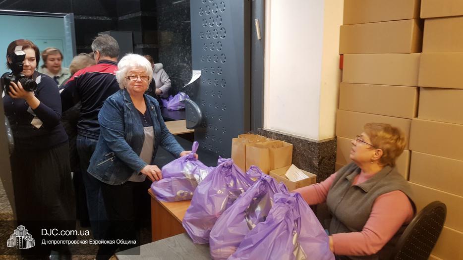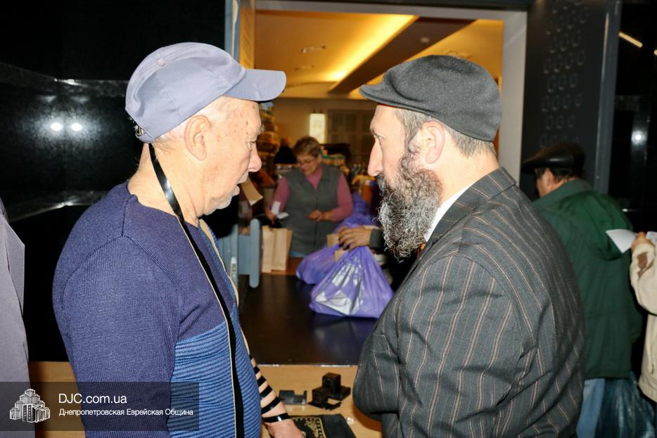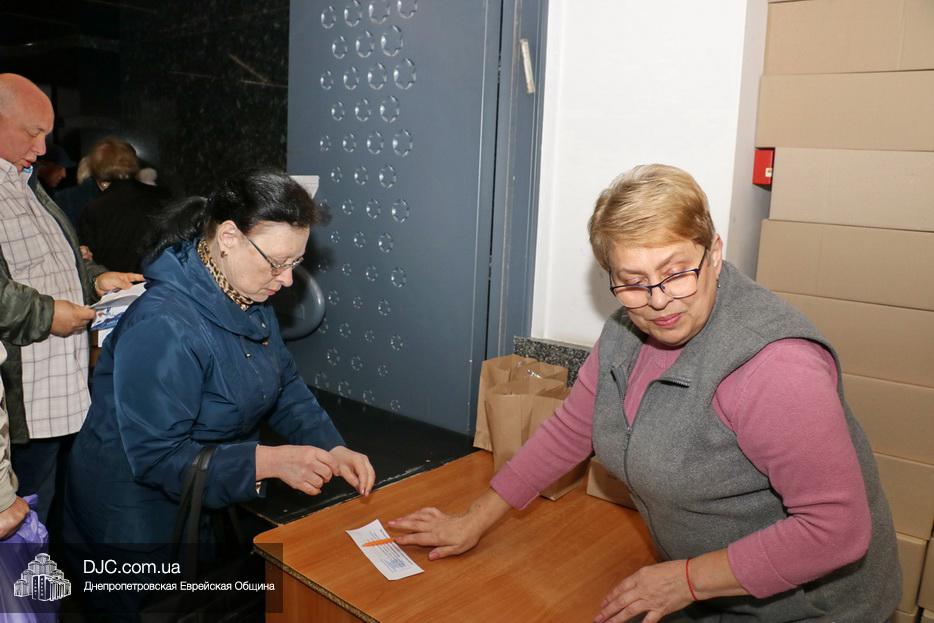 Традиционная крупная благотворительная акция еврейской общины Днепра – выдача продуктовых наборов всем членам общины пенсионного возраста, а также имеющим инвалидность, которая проводится по инициативе Президента общины Геннадия Борисовича Боголюбова – началась в центральной синагоге «Золотая Роза».