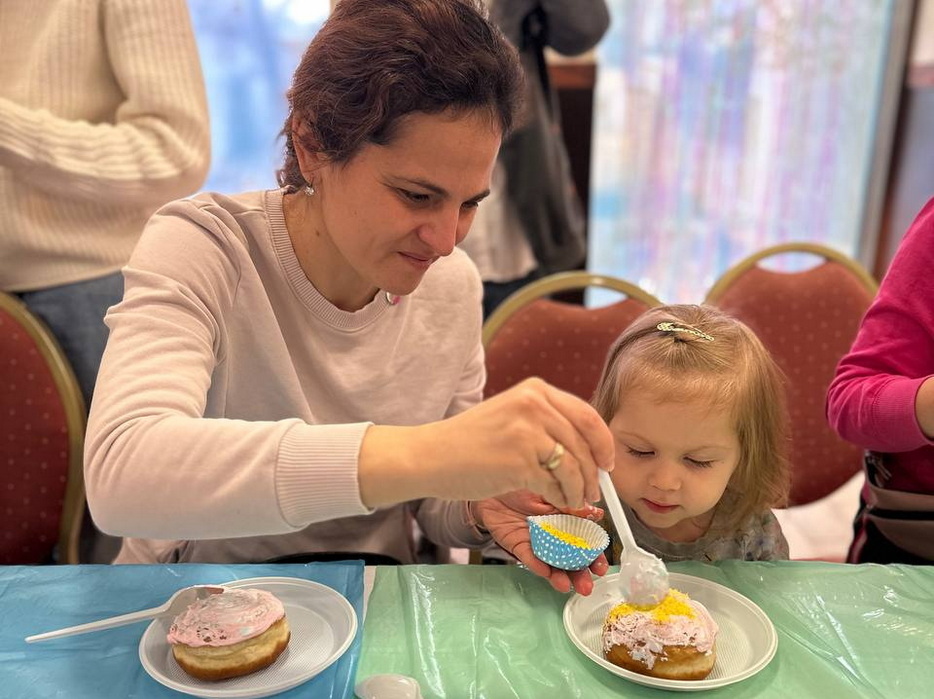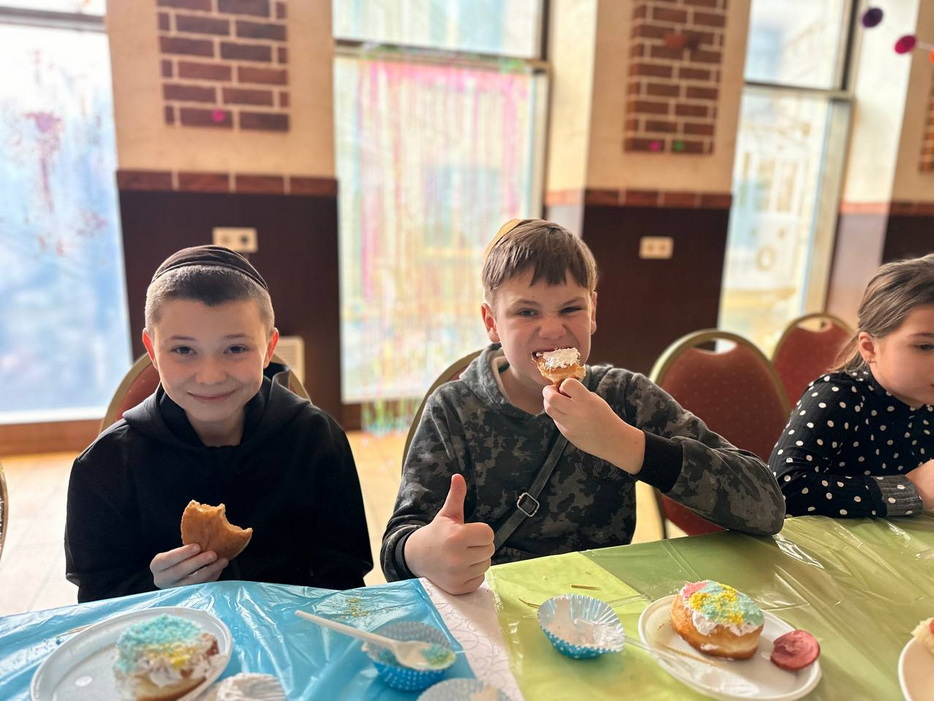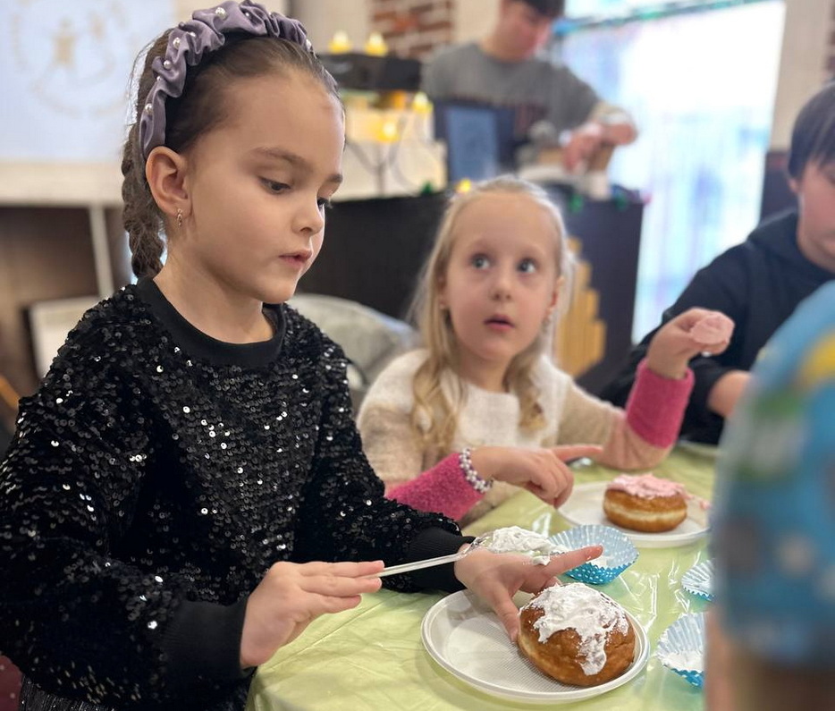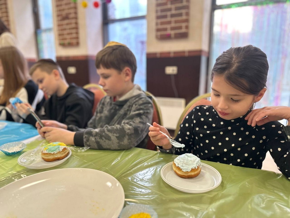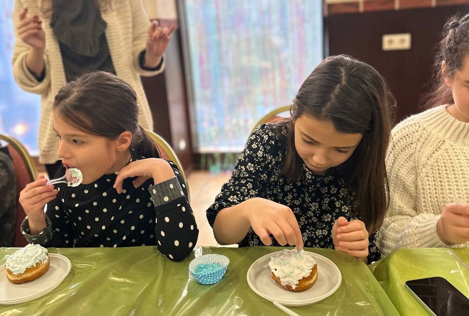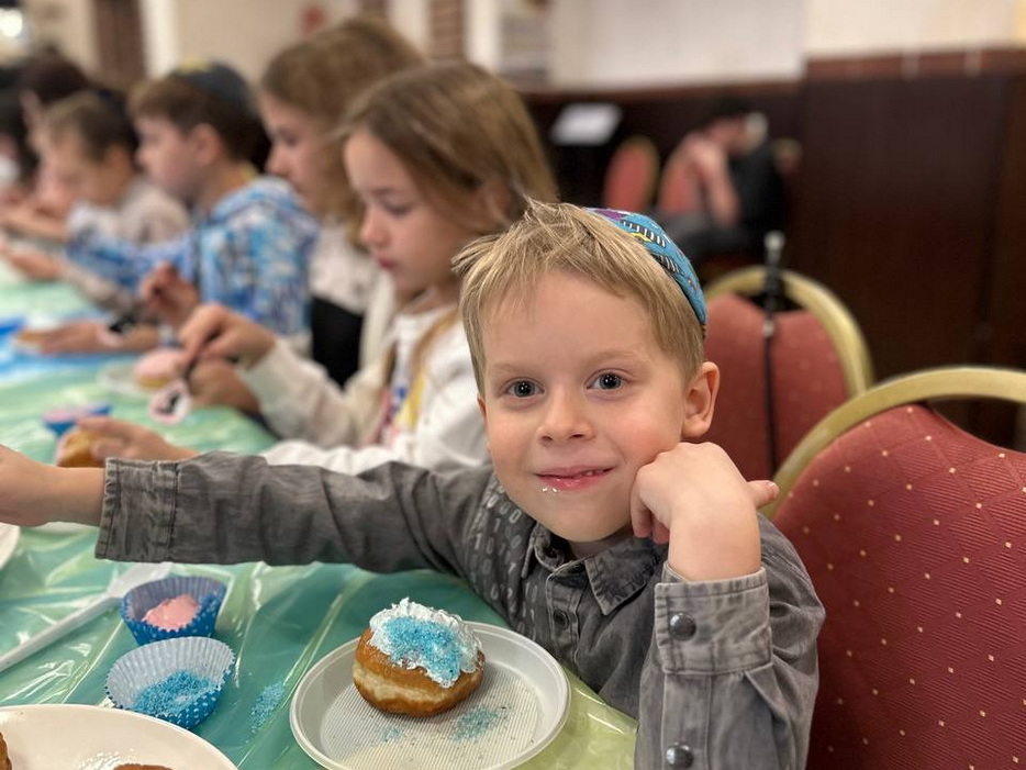 Дети с большим удовольствием украшали пончики-суфганийот яркой глазурью и посыпками, а затем наслаждались угощением. Особым гостем мероприятия стал наш духовный наставник из Израиля Ян Львович Сидельковский, который каждую неделю делится с родителями и волонтерами мудростью Торы и важными жизненными уроками.
