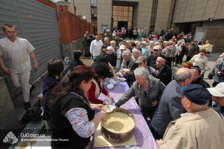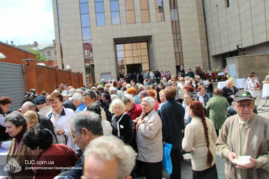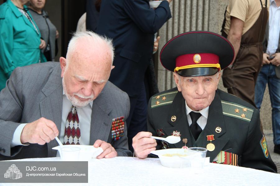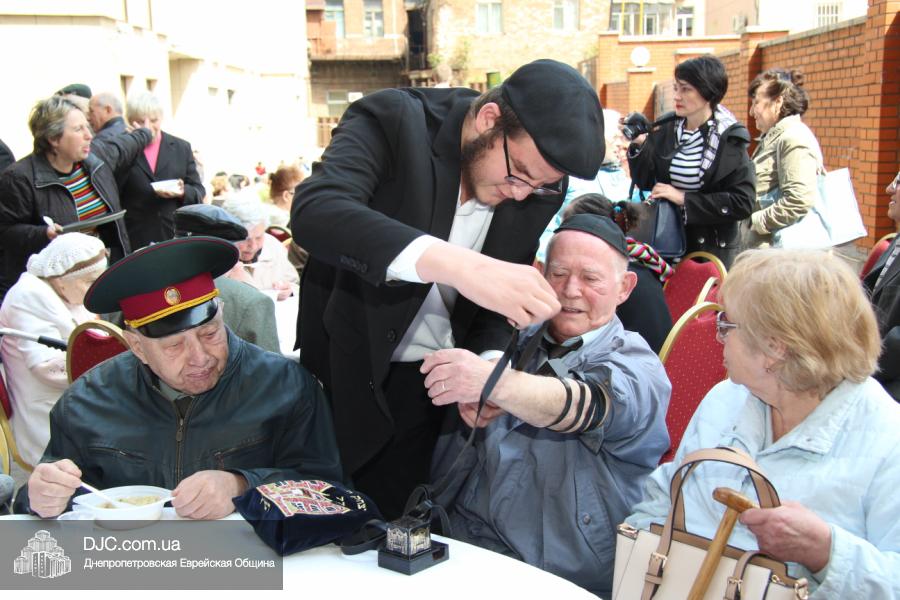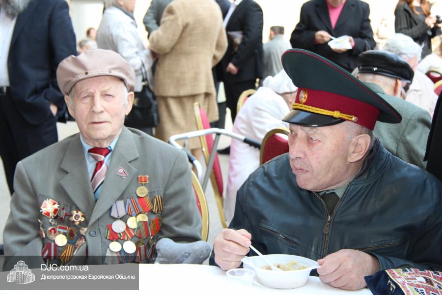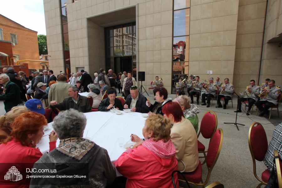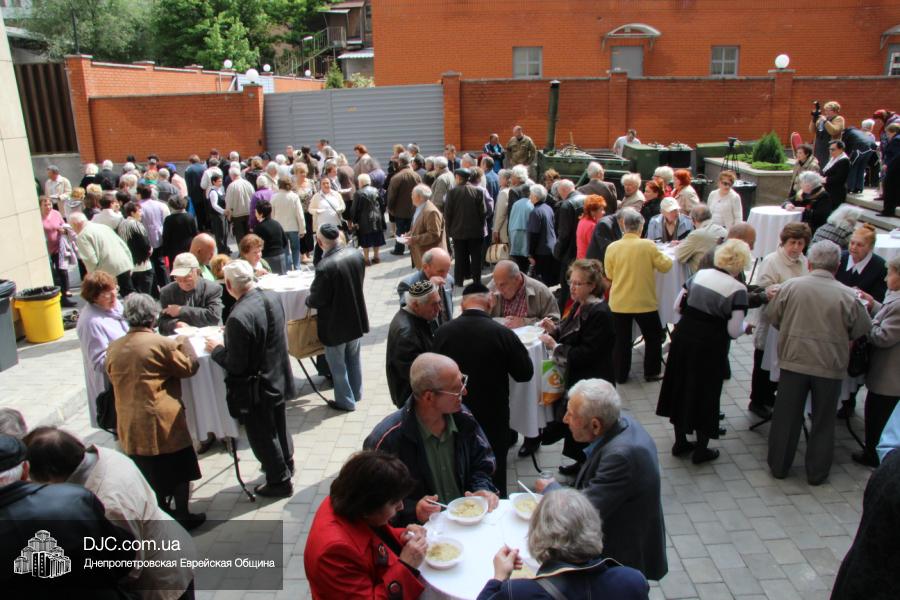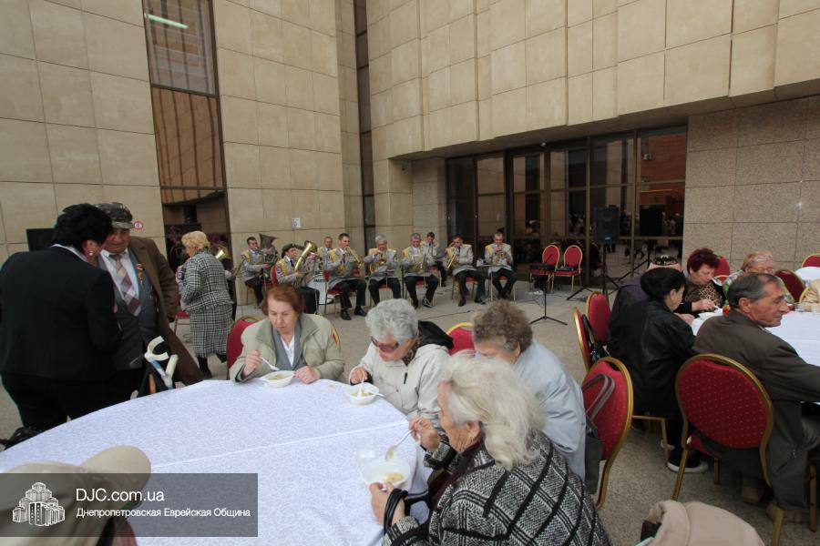 Днепропетровская Еврейская Община всегда заботится о ветеранах и тех людях, которые героически отстояли наш мир от «коричневой чумы» гитлеровского нацизма. Днепропетровская еврейская община провела много мероприятий, посвященных Дню Победы. Благотворительный фонд «Хесед Менахем» организовал для ветеранов большое праздничное гуляние во дворе центра «Менора». Здесь была и традиционная полевая каша, и «фронтовые 100 грамм», и задушевные беседы, а музыкальную атмосферу праздника обеспечивал настоящий духовой оркестр.
