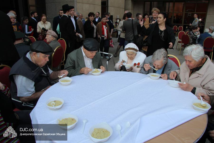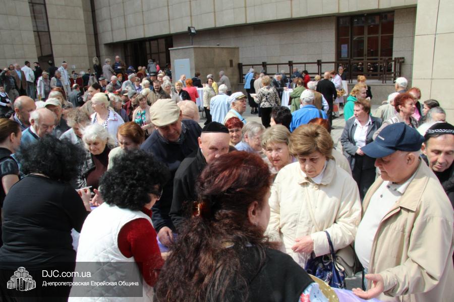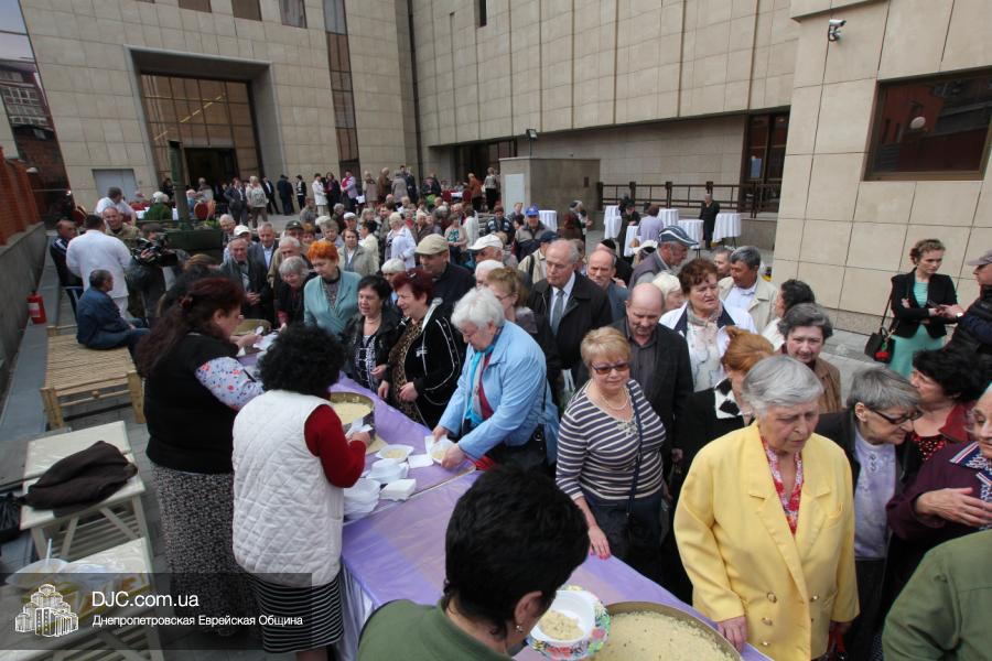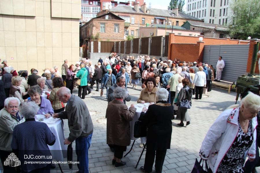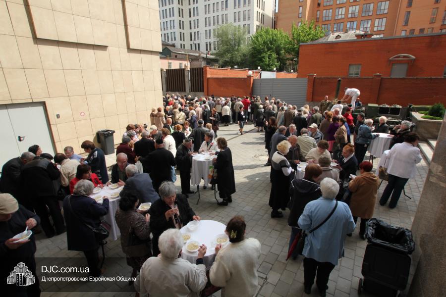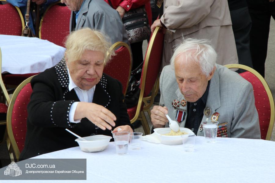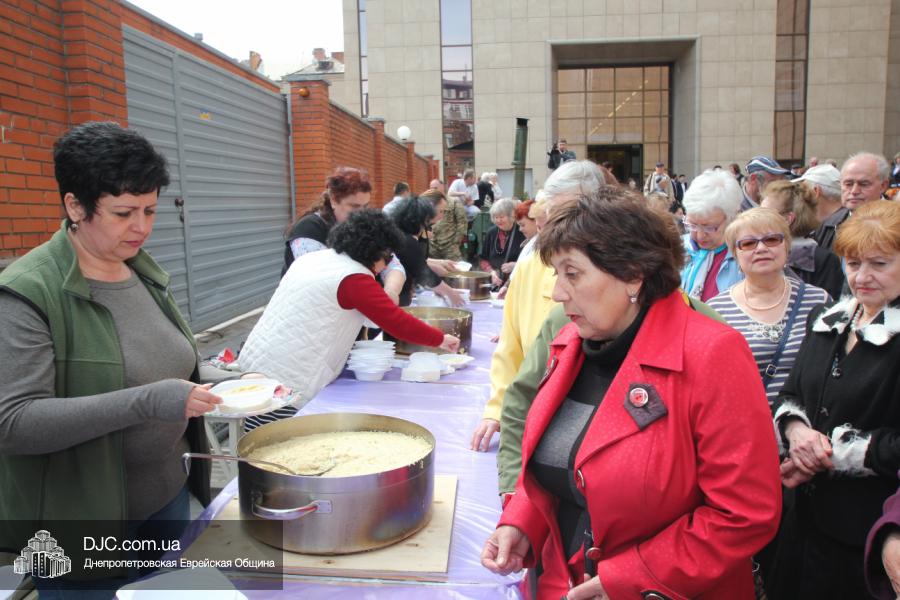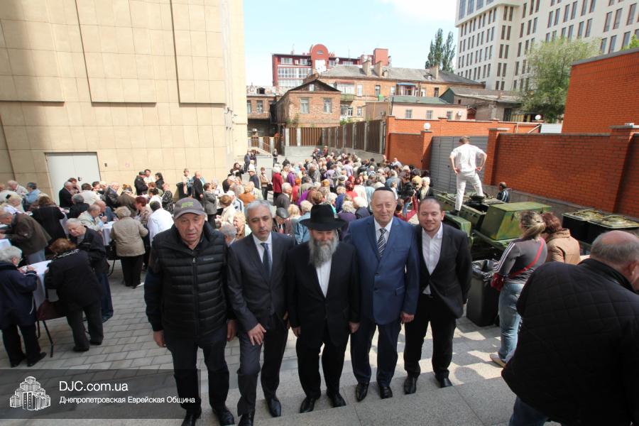 Днепропетровская Еврейская Община всегда заботится о ветеранах и тех людях, которые героически отстояли наш мир от «коричневой чумы» гитлеровского нацизма. Днепропетровская еврейская община провела много мероприятий, посвященных Дню Победы. Благотворительный фонд «Хесед Менахем» организовал для ветеранов большое праздничное гуляние во дворе центра «Менора». Здесь была и традиционная полевая каша, и «фронтовые 100 грамм», и задушевные беседы, а музыкальную атмосферу праздника обеспечивал настоящий духовой оркестр.