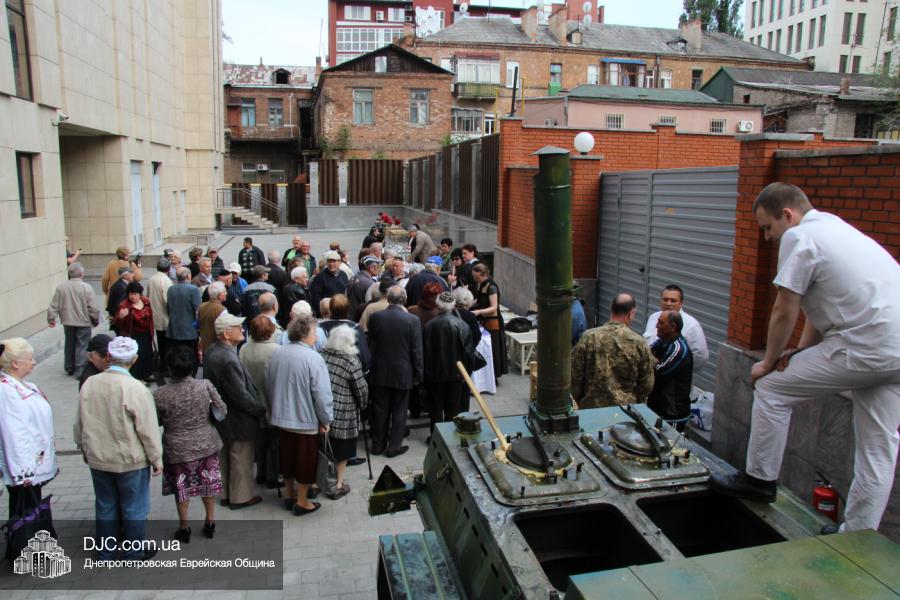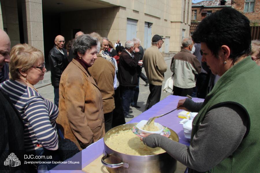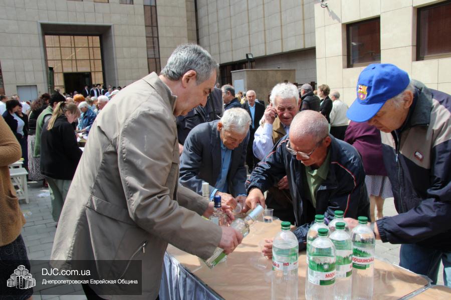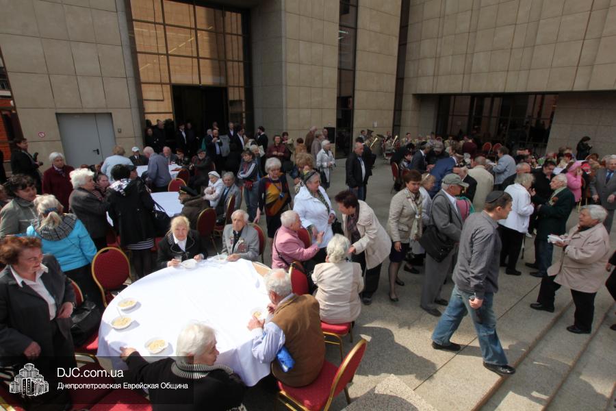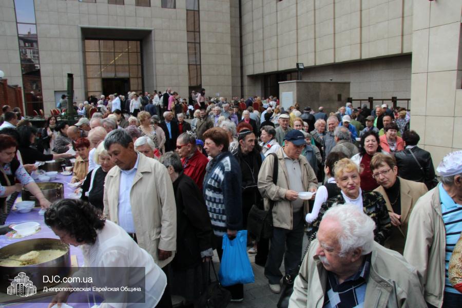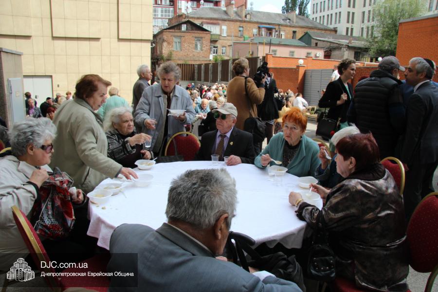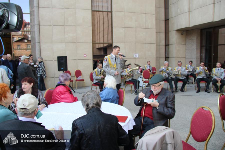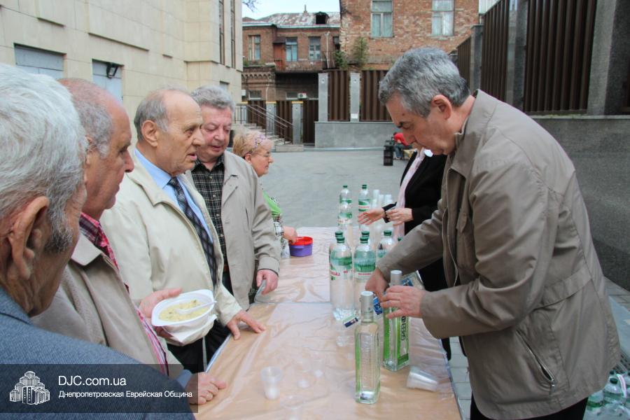 Днепропетровская Еврейская Община всегда заботится о ветеранах и тех людях, которые героически отстояли наш мир от «коричневой чумы» гитлеровского нацизма. Днепропетровская еврейская община провела много мероприятий, посвященных Дню Победы. Благотворительный фонд «Хесед Менахем» организовал для ветеранов большое праздничное гуляние во дворе центра «Менора». Здесь была и традиционная полевая каша, и «фронтовые 100 грамм», и задушевные беседы, а музыкальную атмосферу праздника обеспечивал настоящий духовой оркестр.