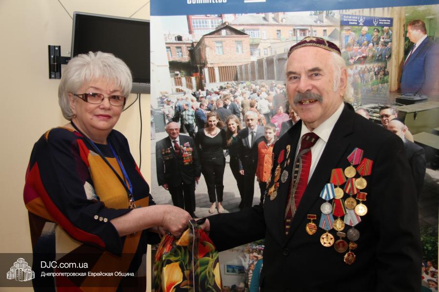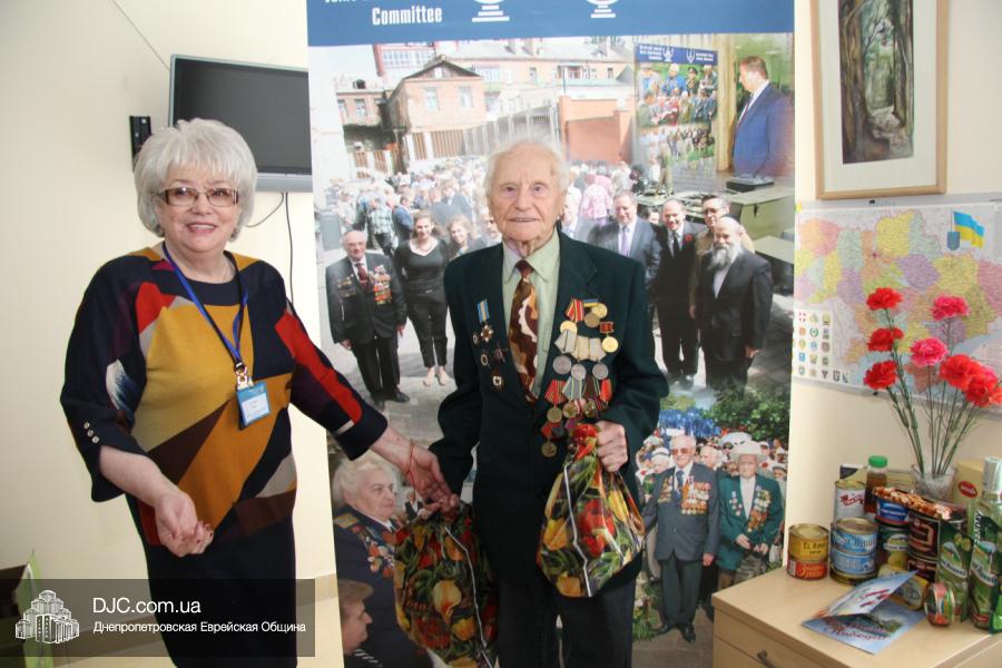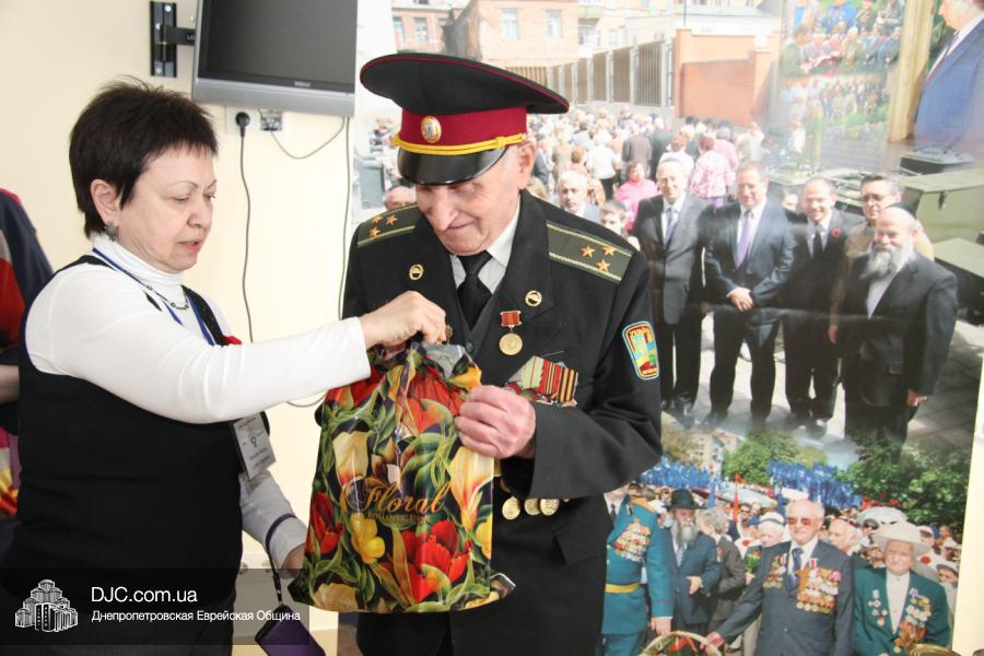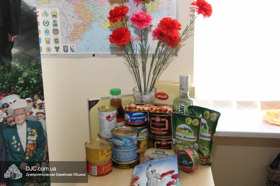Совет евреев-ветеранов, при поддержке Еврейской Общины и «Хеседа Менахем», приготовил каждому ветерану, участнику боевых действий, особый подарок – с красной икрой, консервированной печенью трески, тушенкой, несколькими видами рыбных консервов, оливками, консервированными ананасами, соками, конфетами и шоколадом, а также другими лакомствами, которые, увы, пожилые люди в Украине не каждый день могут себе позволить.
