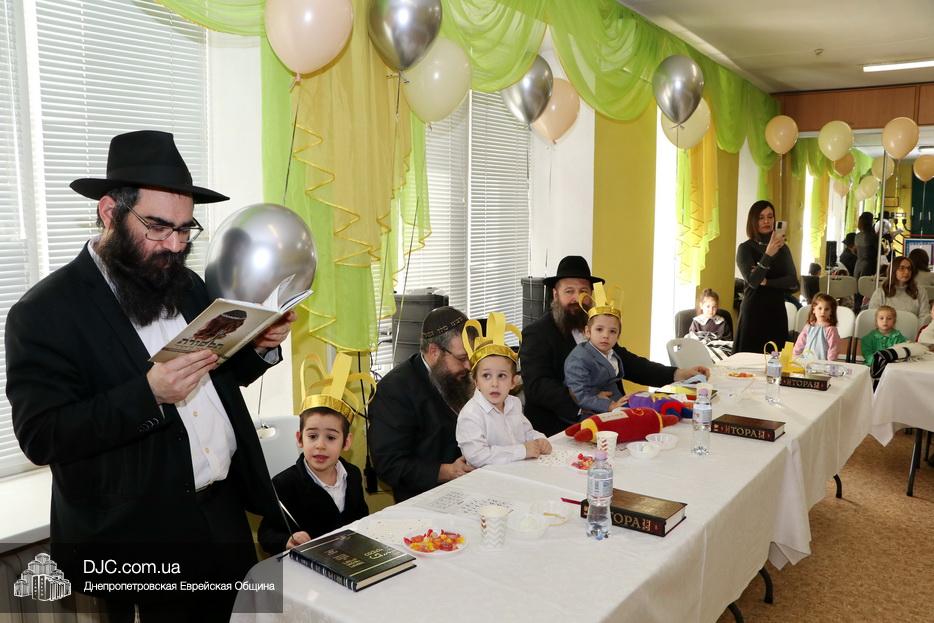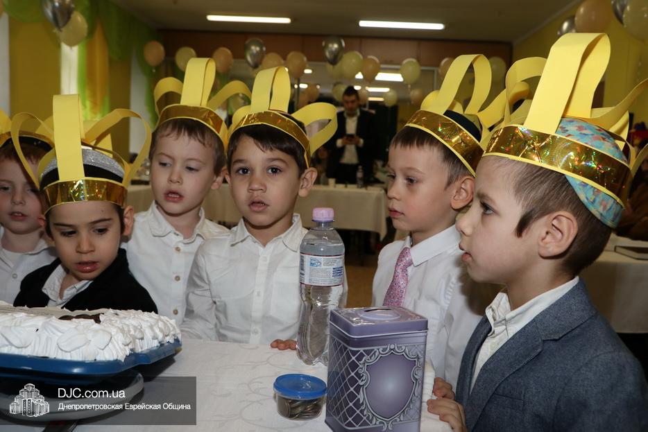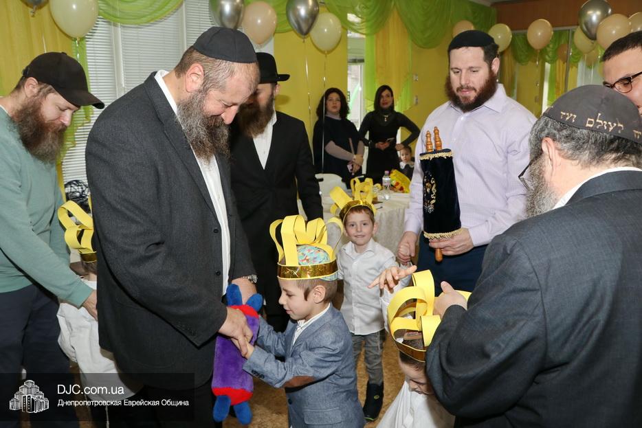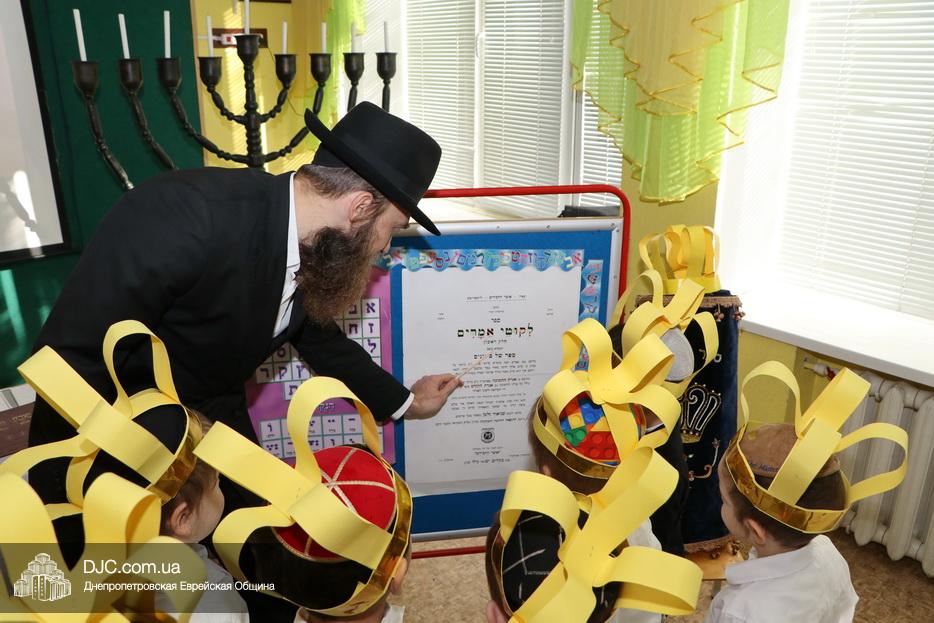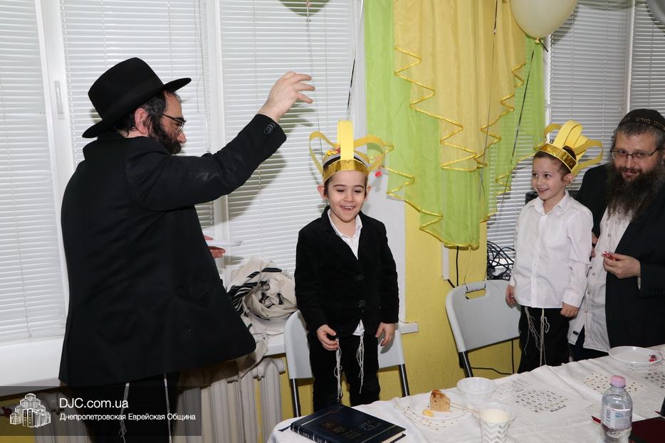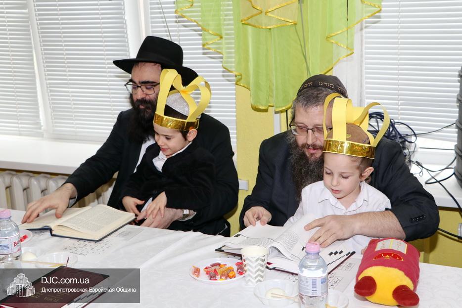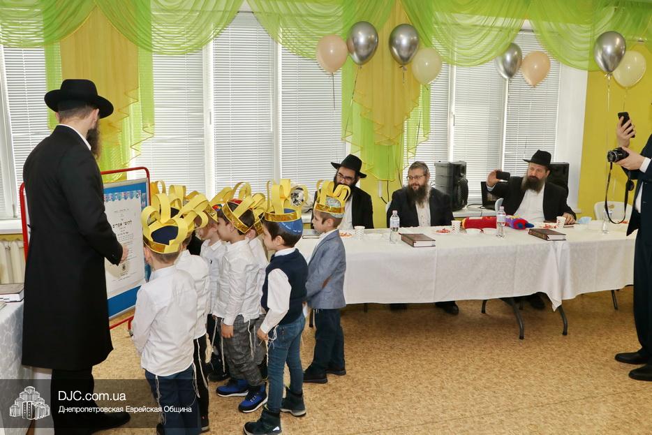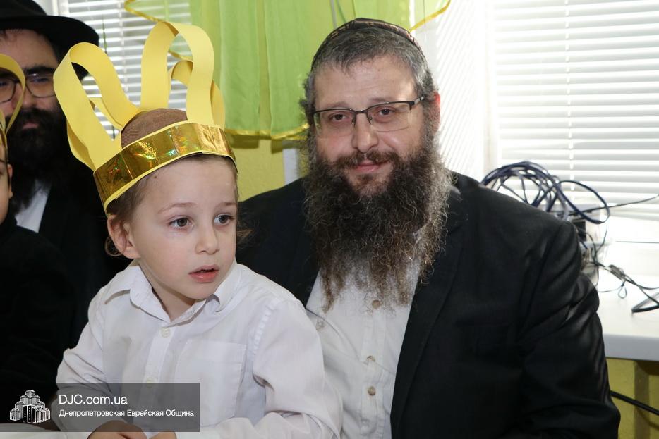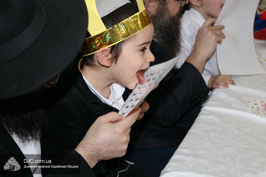 После того как папы передали своих сыновей их первому учителю Реувену Гринбергу, началась церемония начала образовательного процесса, также исполненная глубокого символизма. На каждого ребенка была одета царская корона, затем прозвучало письмо-благословение Любавического Ребе, которое прочитал раввин Менахем Мендел Фельдман, а перевод его на русский язык – реб Сендер Казаков.