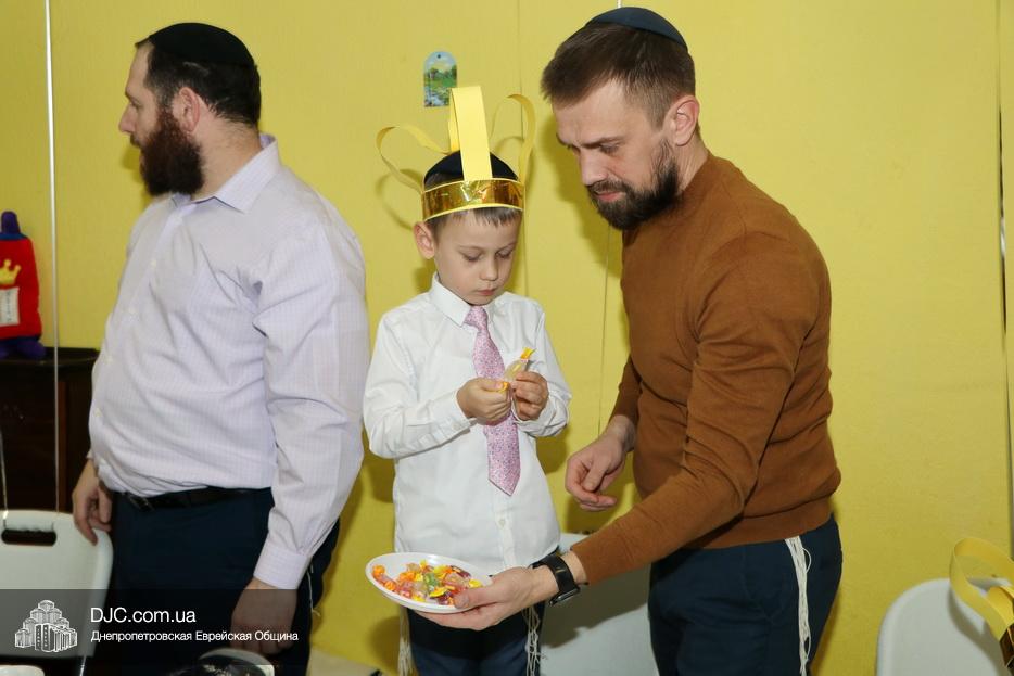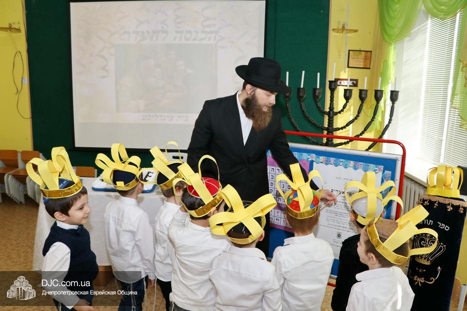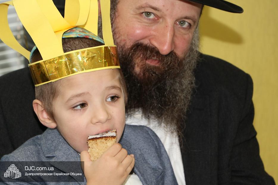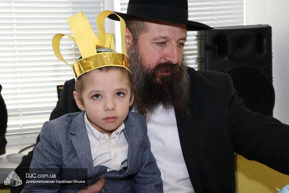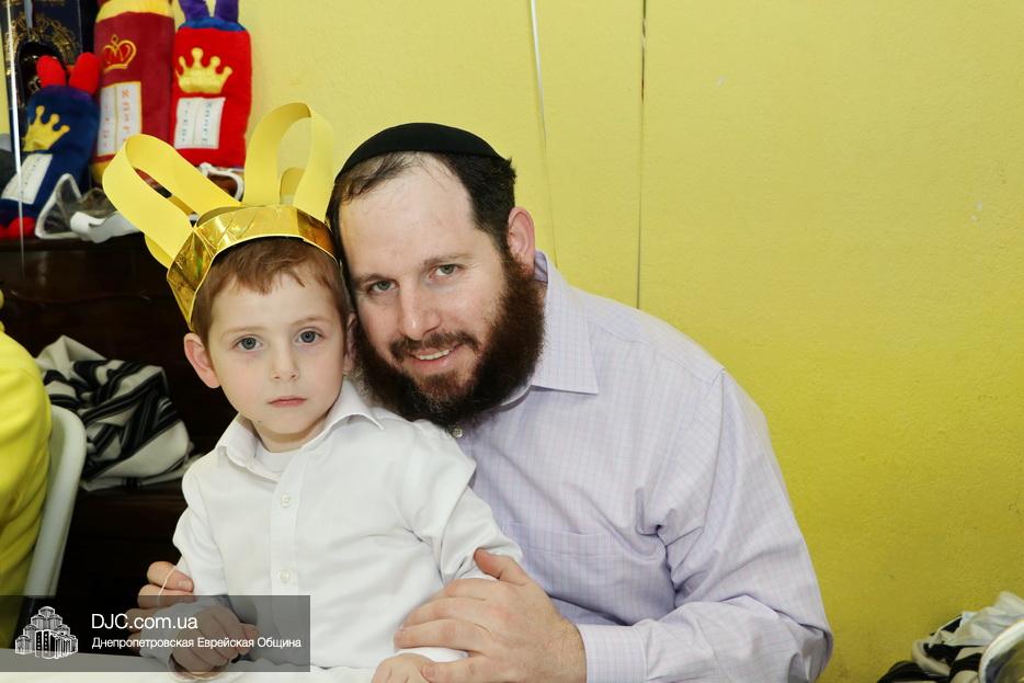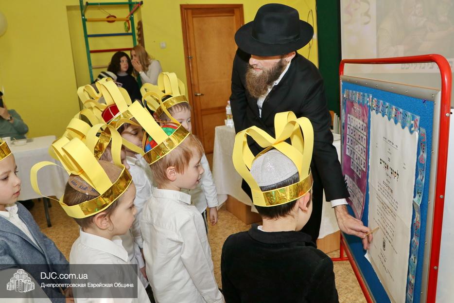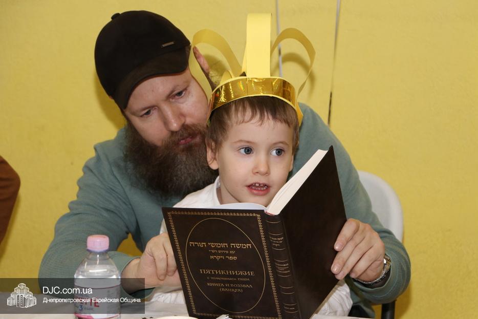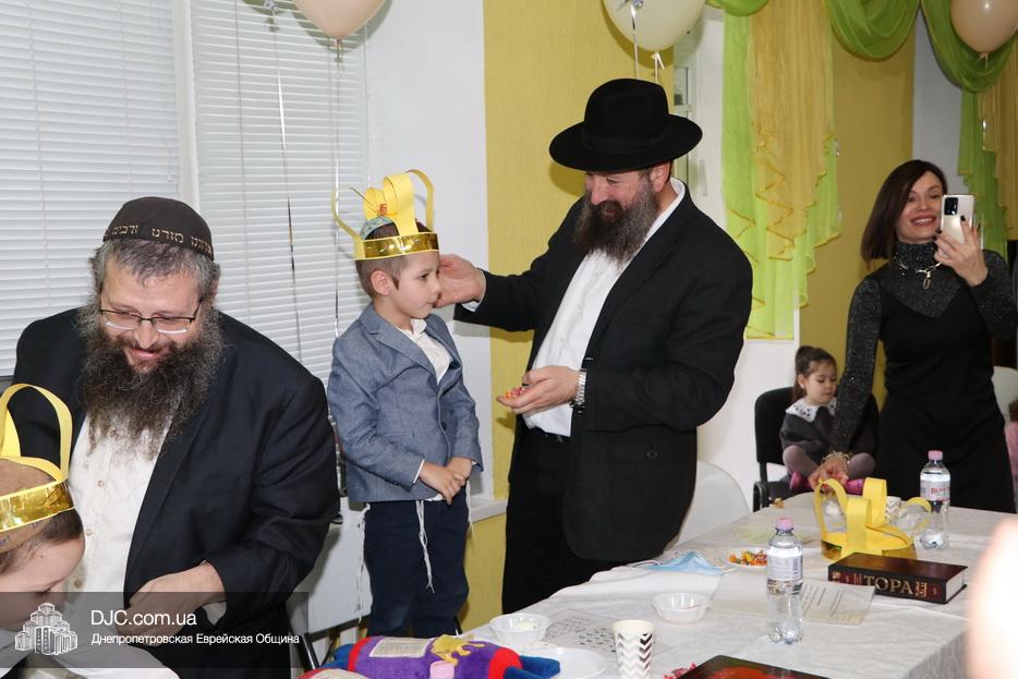 После того как папы передали своих сыновей их первому учителю Реувену Гринбергу, началась церемония начала образовательного процесса, также исполненная глубокого символизма. На каждого ребенка была одета царская корона, затем прозвучало письмо-благословение Любавического Ребе, которое прочитал раввин Менахем Мендел Фельдман, а перевод его на русский язык – реб Сендер Казаков.