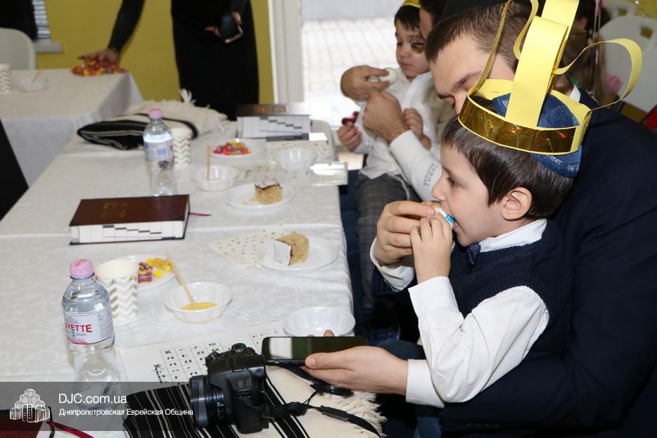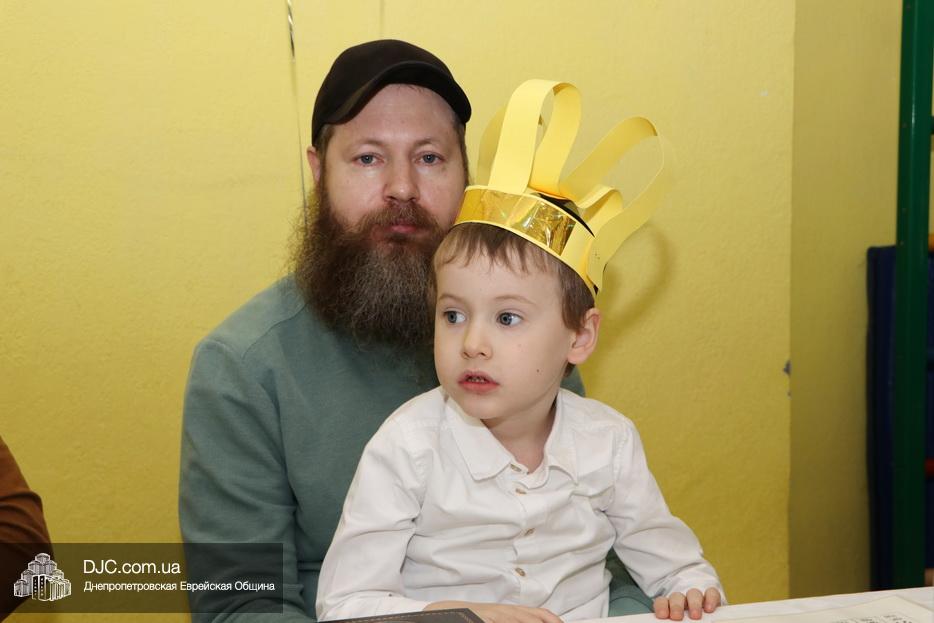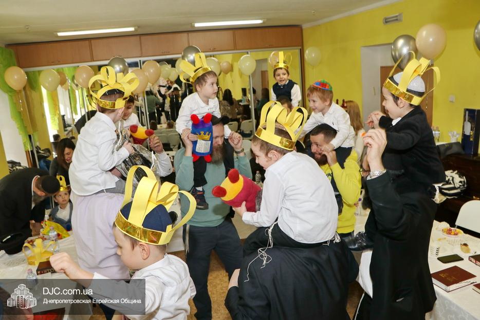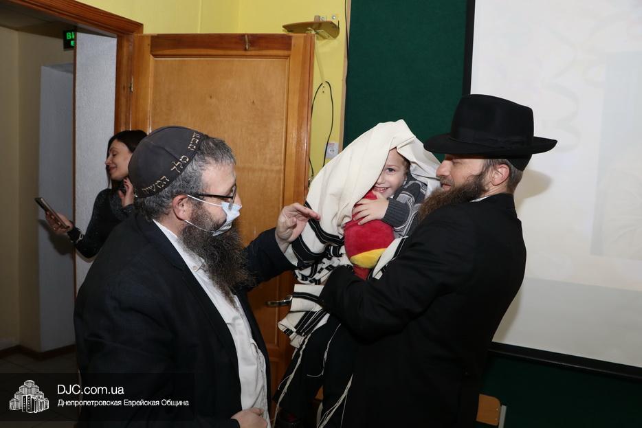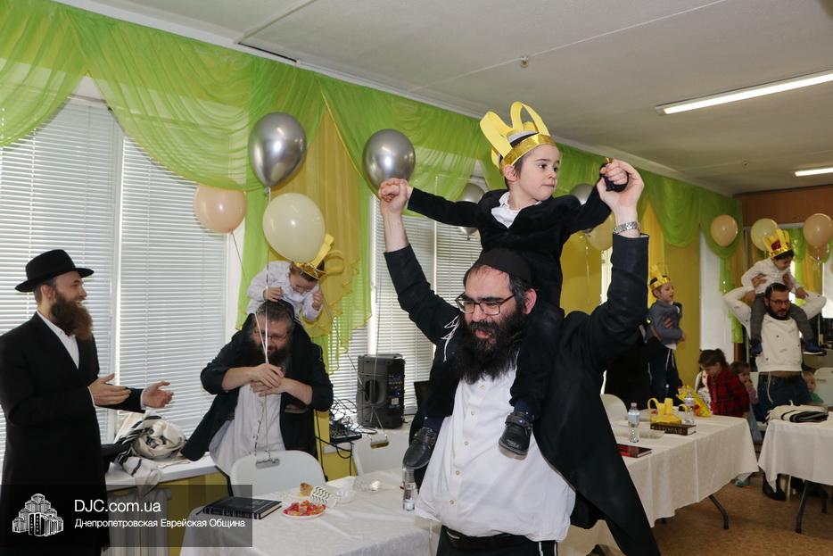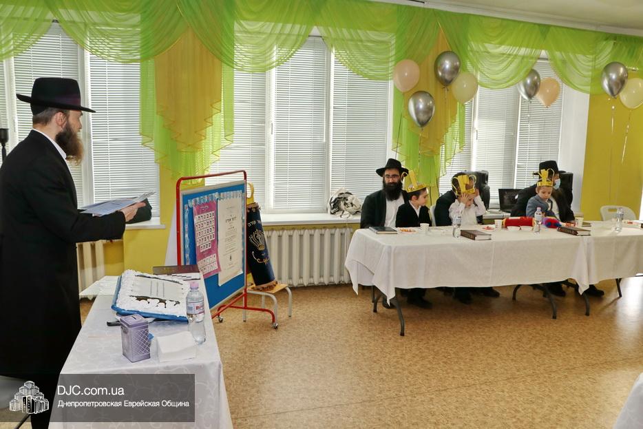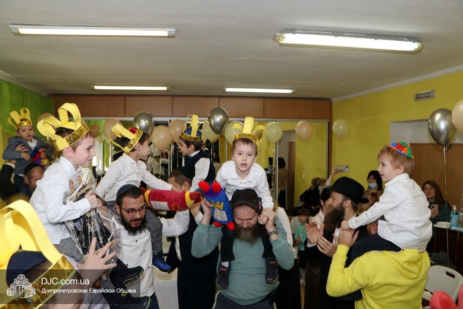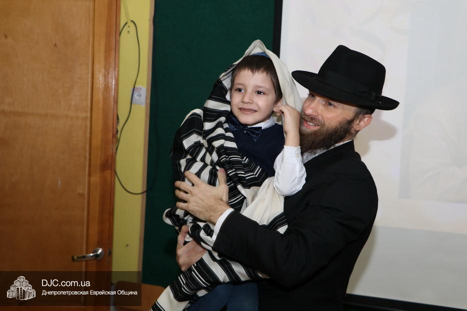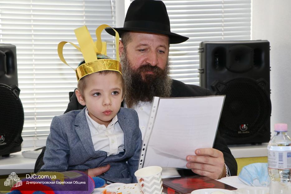 После того как папы передали своих сыновей их первому учителю Реувену Гринбергу, началась церемония начала образовательного процесса, также исполненная глубокого символизма. На каждого ребенка была одета царская корона, затем прозвучало письмо-благословение Любавического Ребе, которое прочитал раввин Менахем Мендел Фельдман, а перевод его на русский язык – реб Сендер Казаков.