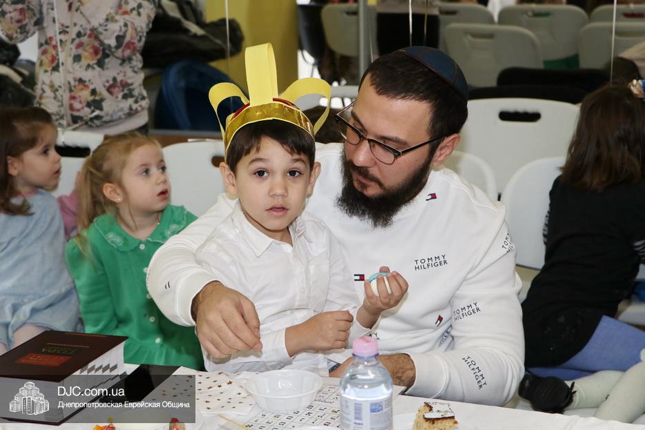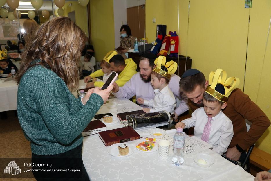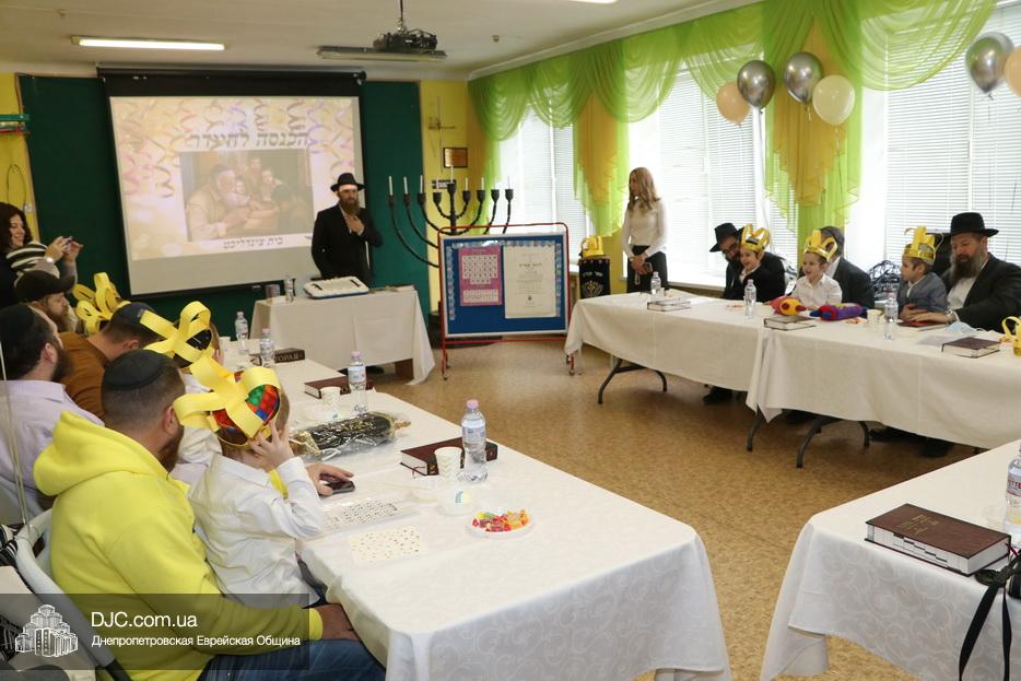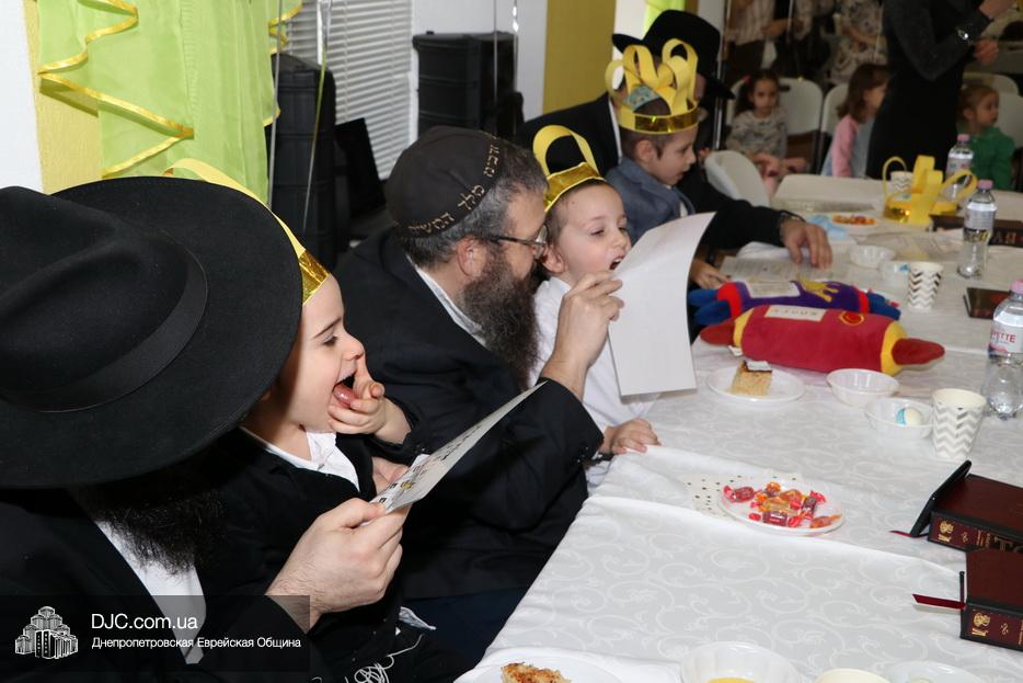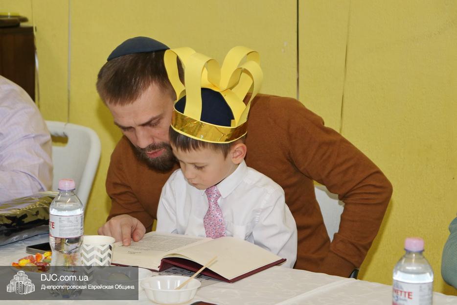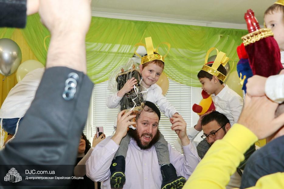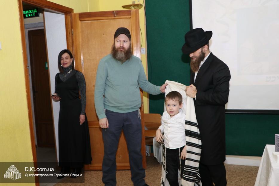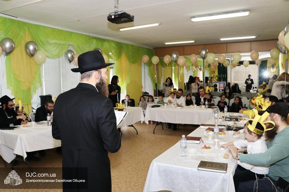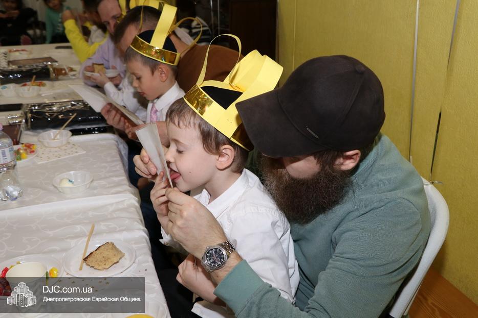 После того как папы передали своих сыновей их первому учителю Реувену Гринбергу, началась церемония начала образовательного процесса, также исполненная глубокого символизма. На каждого ребенка была одета царская корона, затем прозвучало письмо-благословение Любавического Ребе, которое прочитал раввин Менахем Мендел Фельдман, а перевод его на русский язык – реб Сендер Казаков.