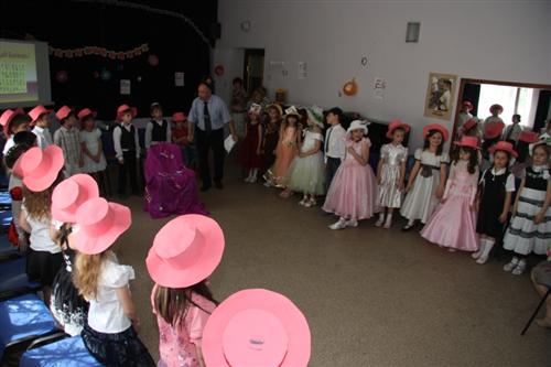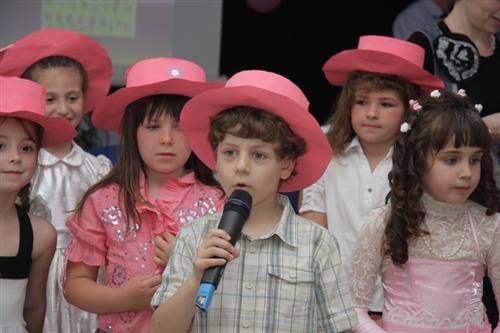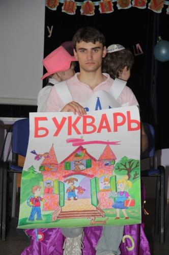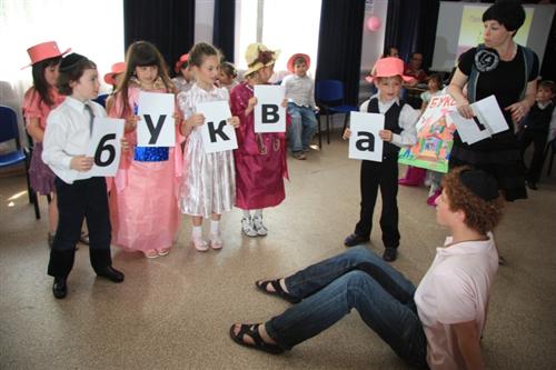 Всех порадовал Букварь – ученик 9-го класса Константин Гинер, и дети развернули вокруг него целое представление, связанное с порядком букв в русском алфавите. Впрочем, не был забыт и иврит – 22 буквы этого самого первого в мире буквенного алфавита удостоились особого танца, а написанной его буквами главной книге всего человечества – Торе, была посвящена целая поэма.