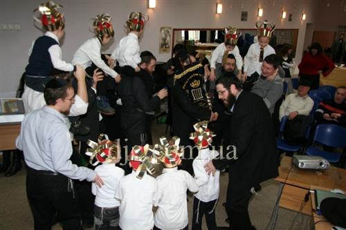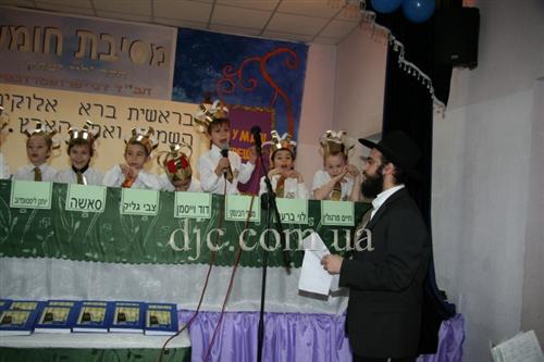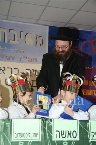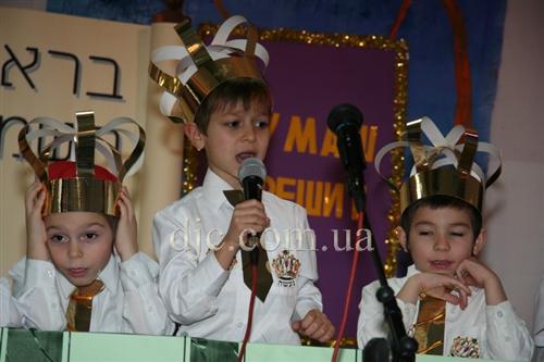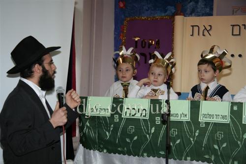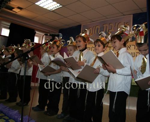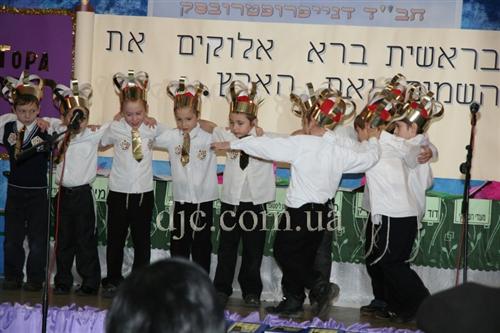 Самые младшие иешиботники Днепропетровска восседали на сцене, одетые в белые рубашки с золотыми галстуками и царские короны – ведь каждый еврейский ребенок должен ощущать, что наследие его предков это величайшая ценность всего человечества, грандиозный подарок Вс-вышнего созданному Им миру.