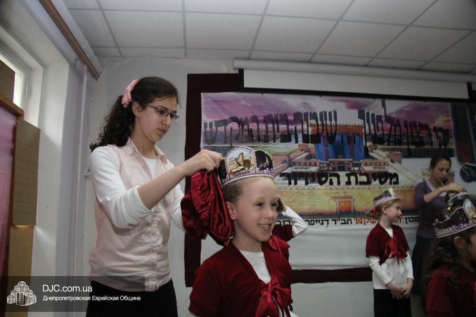 Кульминацией первой части праздника – рассказа о сидуре в песнях и танцах – стал момент, когда старшие воспитанницы махона заменили береты на головах девочек коронами, подчеркнув, что каждая из них самая настоящая принцесса. Виновницы торжества подготовили для своих родителей и всех гостей праздника обширную программу: выучили стихи и песни, и даже разыграли несколько сценок – о дорожной молитве, о важности защиты мира, как в стране, так и в доме, и о самом святом дне еврейской недели – Святой Субботе.