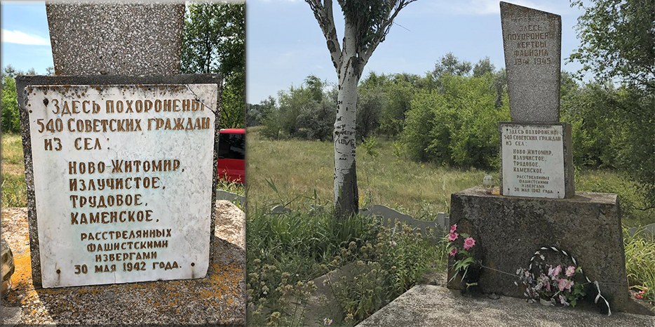 «Как и у Бориса Тмура, корни моей семьи происходят из сельскохозяйственных колоний этого района и мы даже с ним весьма отдаленные родственники, — рассказал нашему сайту Авраам Иосиф Ицхак Каршенбаум, — мы посетили одно из мест Холокоста, прочитали молитву «Эль Моле Рахамим» у небольшого монумента и хочу отметить, что он находится в очень хорошем состоянии и за ним явно ухаживают местные жители. Отмечу, что памятник еще советского периода и пока тут все еще нет украино-еврейской мемориализации этого места, нет знака, ясно говорящего, что тут покоятся более 540 жителей окрестных сел, уничтоженных нацистами только за то, что они были евреями, но надеемся, это произойдет в ближайшее время. Мы хотели посетить еще несколько мест, но поиски этого захоронения заняли у нас намного больше времени, чем мы рассчитывали».
