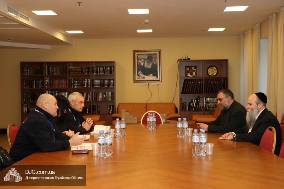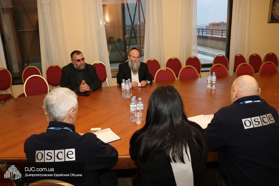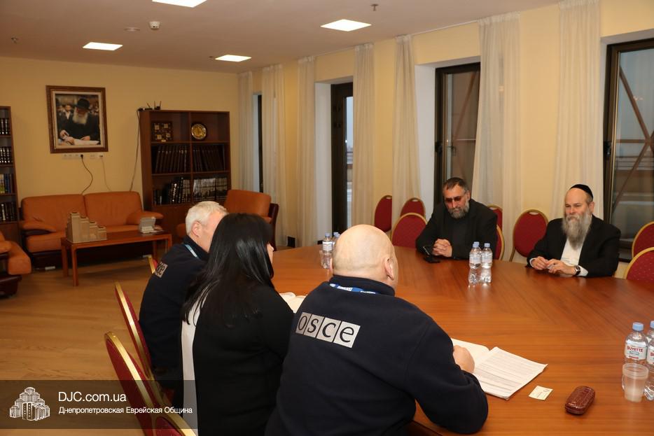 Представители Специальной Мониторинговой Миссии Организации по Безопасности и Сотрудничеству в Европе (SMM OSCE) провели встречу с Главным раввином Днепра Шмуэлем Каминецким по вопросам обеспечения безопасности национальных религиозных меньшинств, помощи беженцам с оккупированных территорий и поиска путей прекращения вооруженного конфликта.