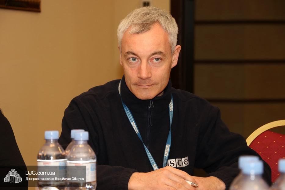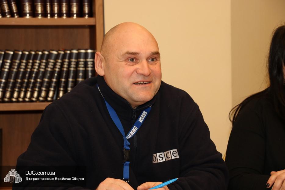 SMM OSCE представляли руководитель офиса в Днепре Олег Старостин (Россия) и офицер-наблюдатель Стивен Дуглас (Stephen Douglas, США). Также во встрече принял участие советник городского головы Днепра по вопросам национальностей и религиозных организаций Олег Ростовцев.