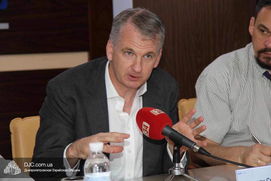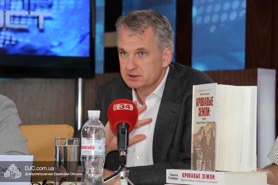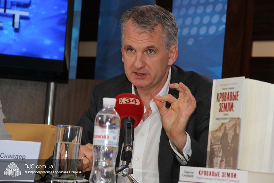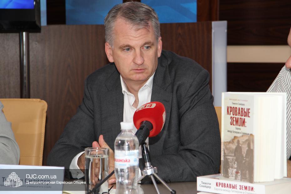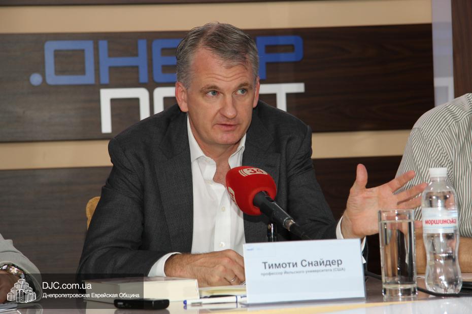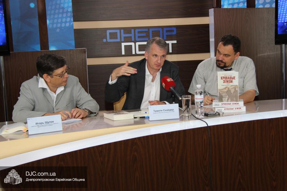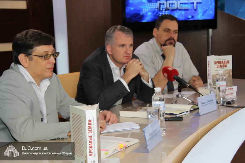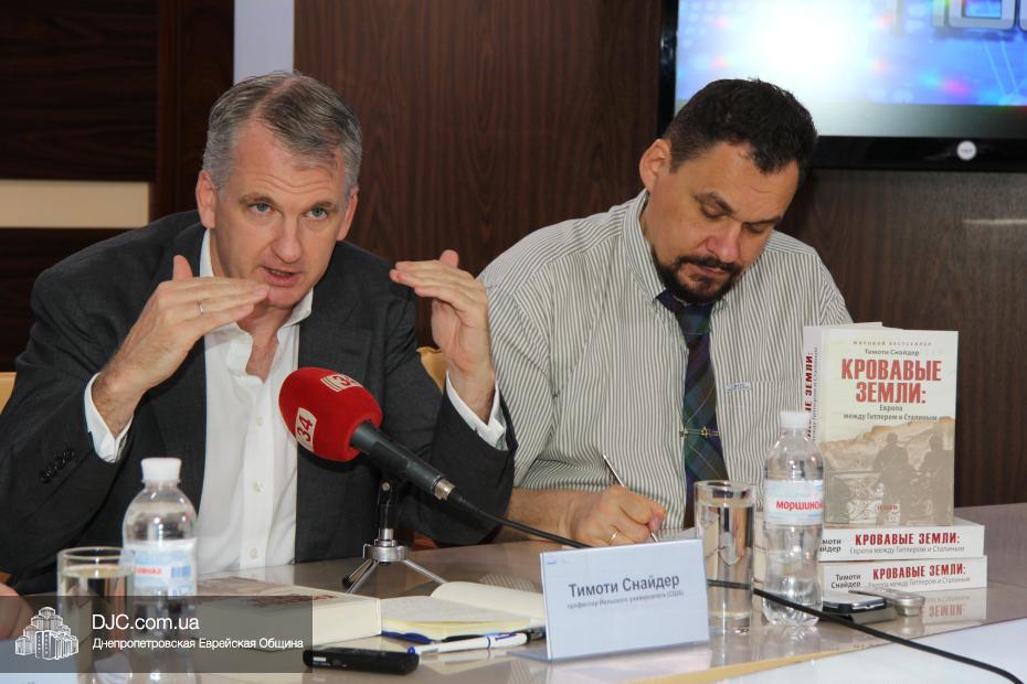 Визит одного из корифеев исторической науки современности известного публициста и общественного деятеля Тимоти Снайдера в Днепропетровск начался с пресс-конференции, которую он дал вместе с директором УИИХ «Ткума» и музея «Память еврейского народа и Холокост в Украине» Игорем Щупаком в медиа-центре «Днепр Пост», и которая была посвящена предстоящей презентации первого русскоязычного издания, ставшего мировым бестселлером исторического исследования – «Кровавые земли: Европа между Гитлером и Сталиным».