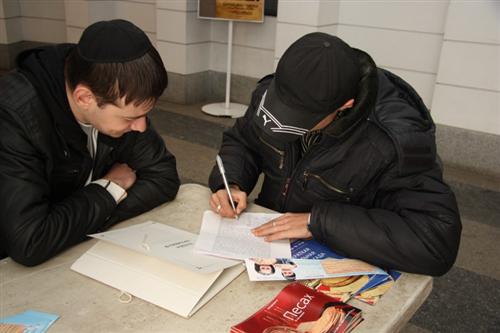 В холле Центральной синагоги «Золотая Роза» Фонд «Шиурей Тора» установил дежурство на предпасхальных постах, которые помогают каждому еврею правильно подготовиться к празднику Песах, избавившись от ненужного, и даже запрещенного в дни праздника, и тут же предоставляют возможность начать процесс подготовки к исполнению пасхальных заповедей.