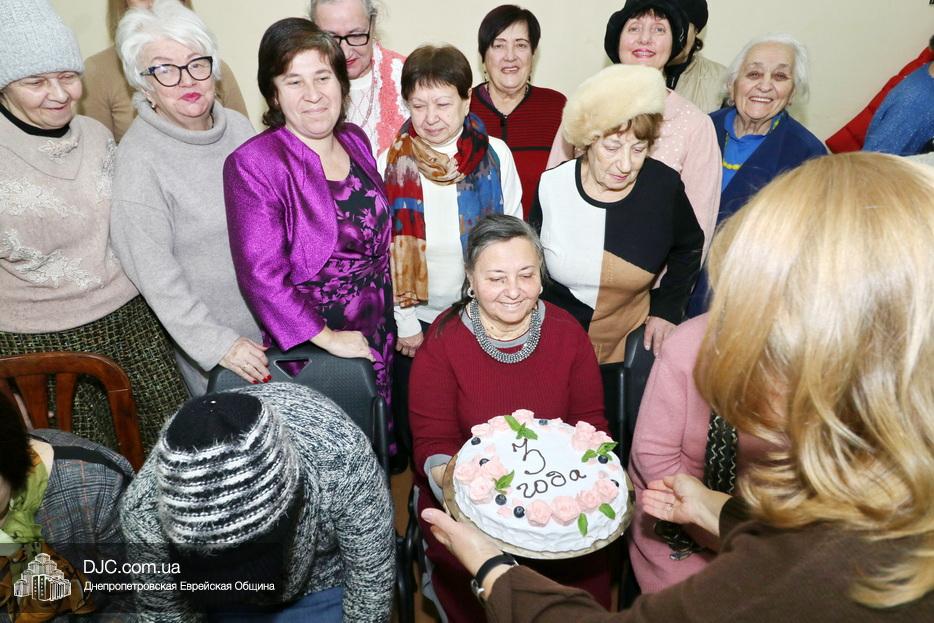 Кульминацией праздника стало внесение именинного торта, который всем участницам проекта преподнесла в подарок Еврейская община Днепра. В свою очередь участницы проекта «Бейт Сара» подготовили специальный текст, в котором рассказали о своем проекте, и его нашему сайту передала староста группы Тамара Чудновская. Наш сайт рад опубликовать его полностью: «Цей невеликий, за своїм об’ємом, текст учасники проекту «Бейт Сара» присвячують його триріччю.