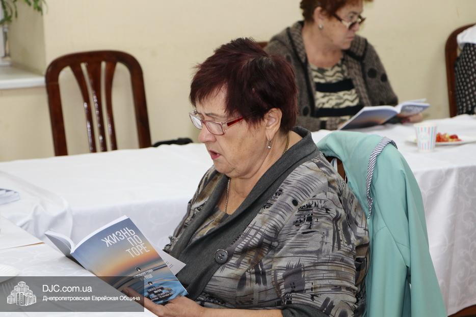 На этом занятии мы приветствовали новую участницу нашего проекта, ею стала Жанна Львовна Летичевская, которой мы с радостью вручили много подарков – это и книга «Тегилим» и натилатница, для омовения рук, которые остальные женщины получили раннее.