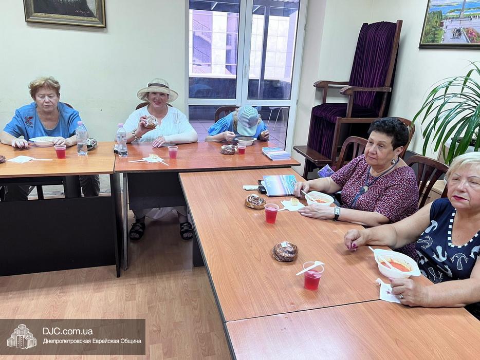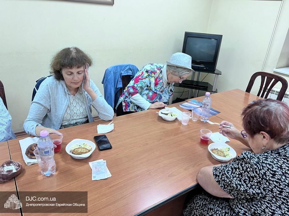 Также в программу дня для пожилых людей включен горячий и кошерный обед, все женщины получают поддержку Еврейской общины Днепра в виде стипендии и многочисленных подарков, которые женщины принимают с радостью и большой благодарностью, а еще каждый четверг они получают халу на Шабат, чтобы распространение света Святой Субботы принесло мир и радость в дома наших участниц и во всю нашу Украину».