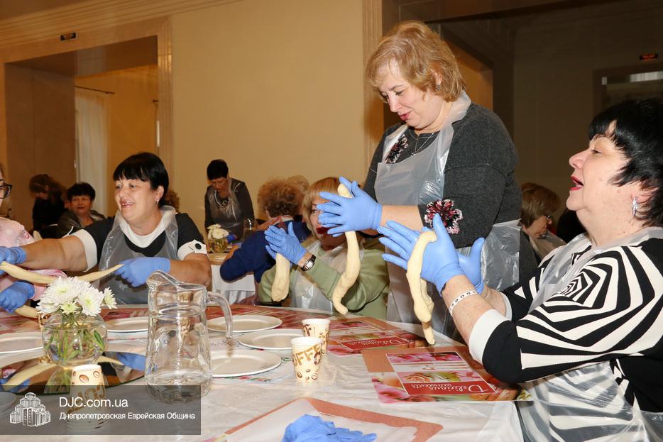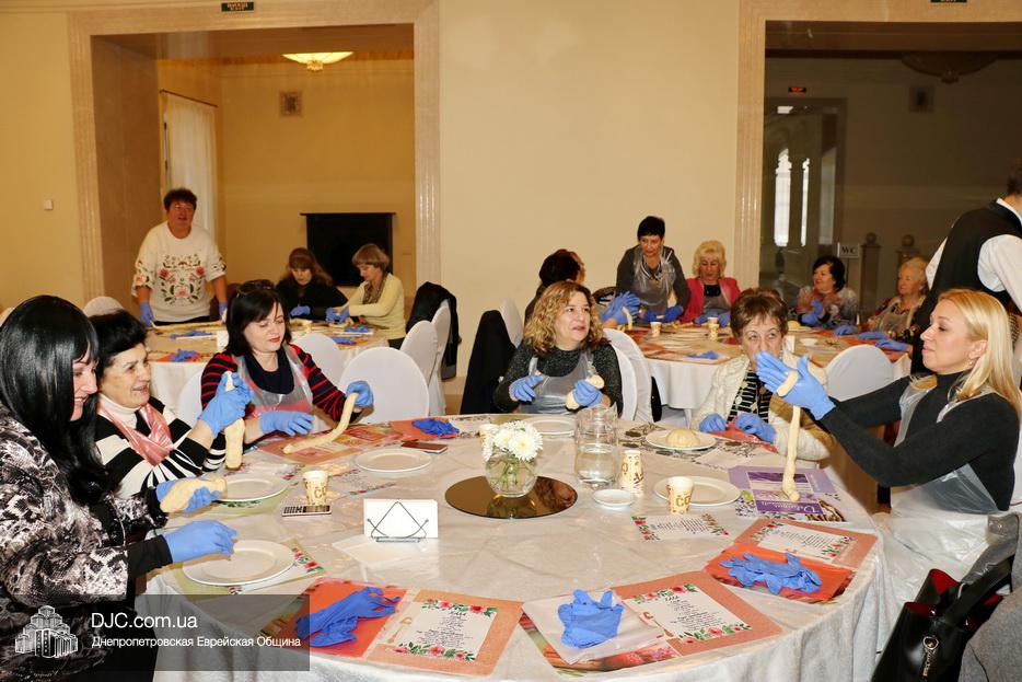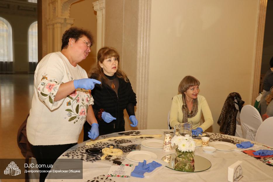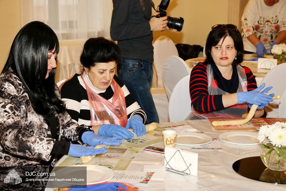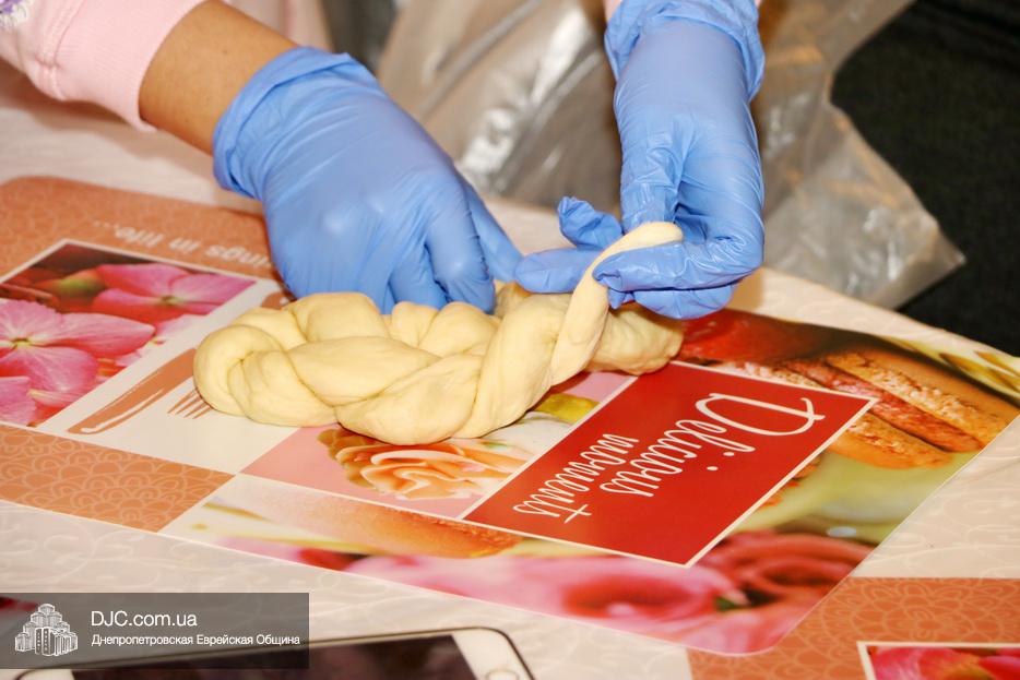 В этот раз учились плести халу «из одного жгута теста» для этого каждой участнице проекта был выдан передник, перчатки и разделочная доска. Разумеется, были те, кто привычен и любит работать с тестом, но были и те, для кого это было чем-то новым и удивительным.