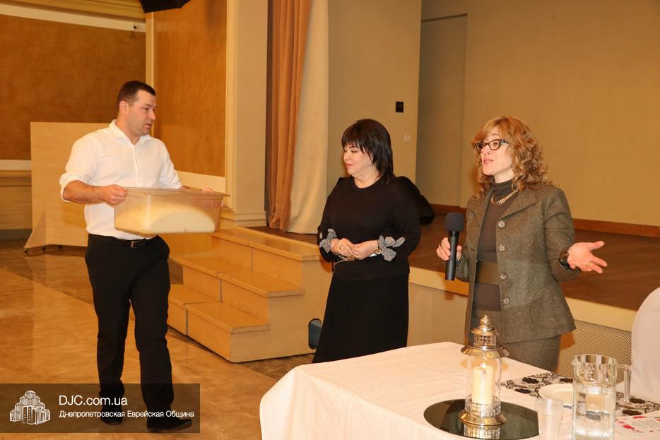 Затем официанты «Меноры» вынесли подготовленное тесто, а ребецн Хана Каминецкая провела обряд отделения халы – одну из важнейших заповедей, возложенную Вс-вышним именно на женщин. Ребецн сказала, что в дальнейших заседаниях проекта обязательно уделят внимание не только плетению хал, но и замешиванию теста для них, и каждая женщина сможет выполнить эту чудесную заповедь, попросив в молитве у Вс-вышнего самое важное для себя и своей семьи.