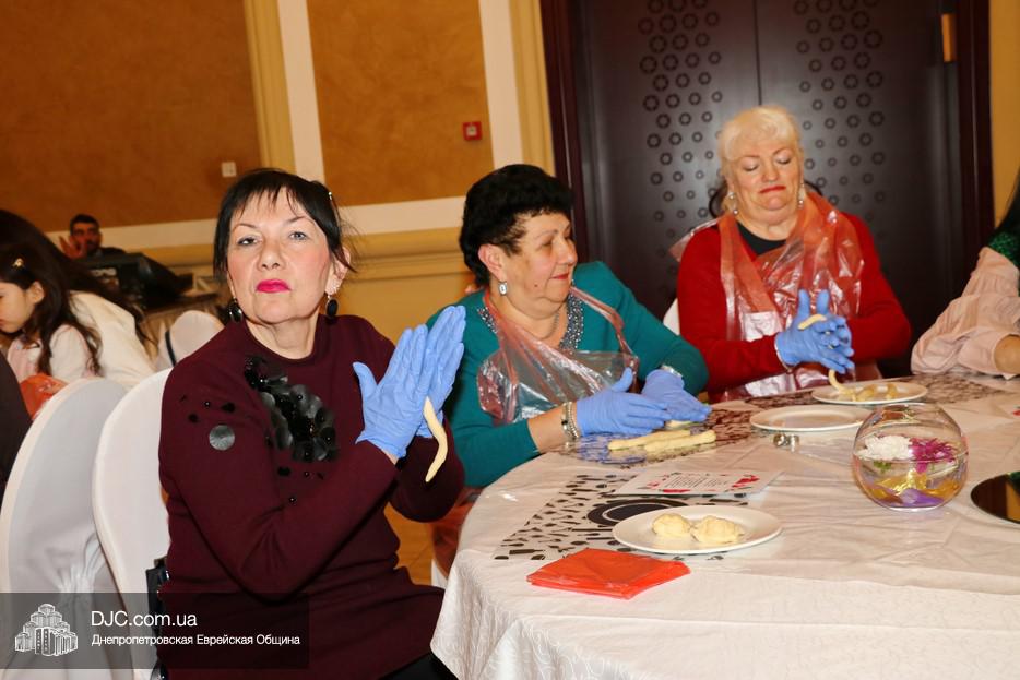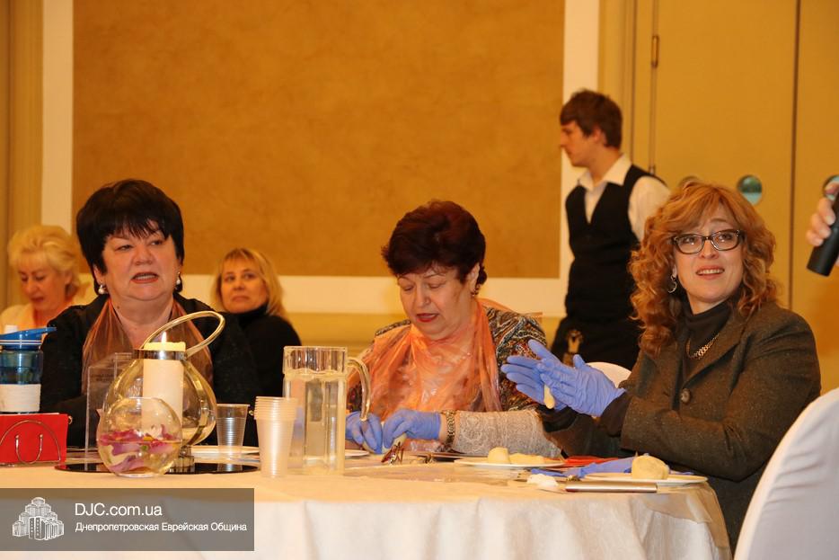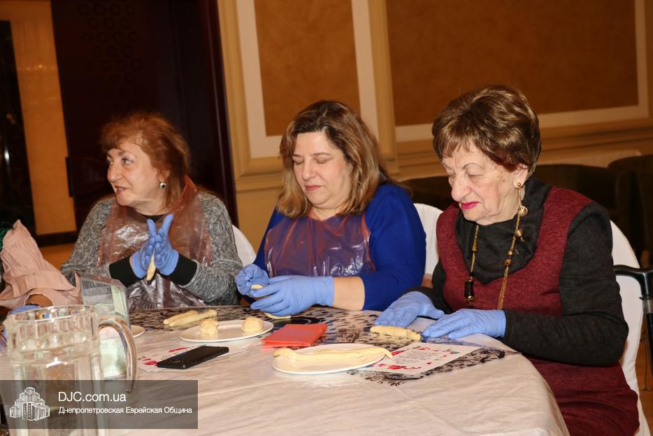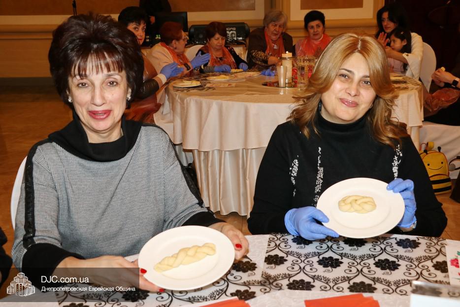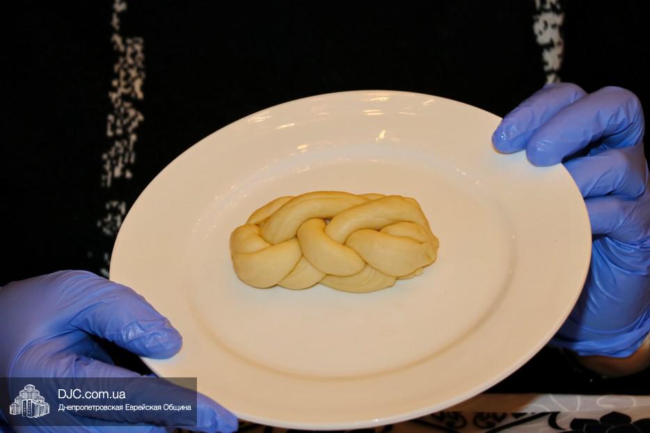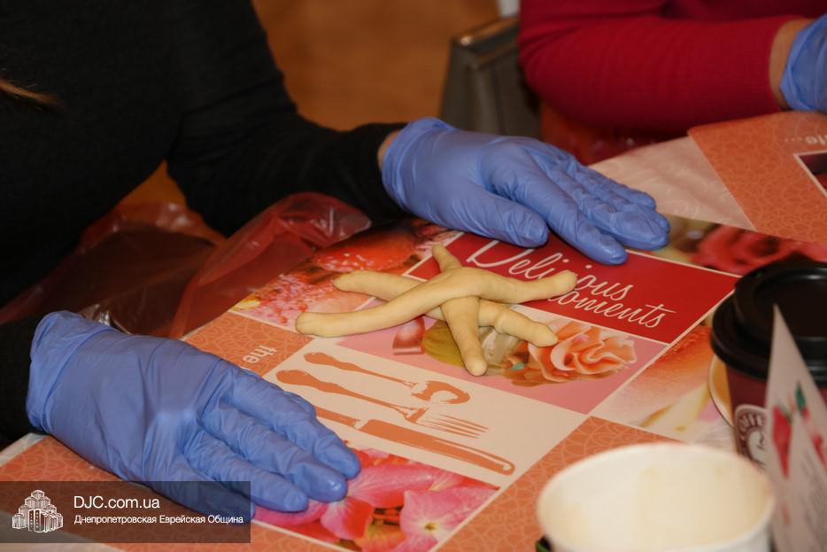 В этот раз учились плести халу «в три косички» для этого каждой участнице проекта был выдан передник, перчатки и разделочная доска. Разумеется, были те, кто привычен и любит работать с тестом, и кто сплел свою халу и из «шести косичек», но были и те, для кого это было чем-то новым и удивительным.