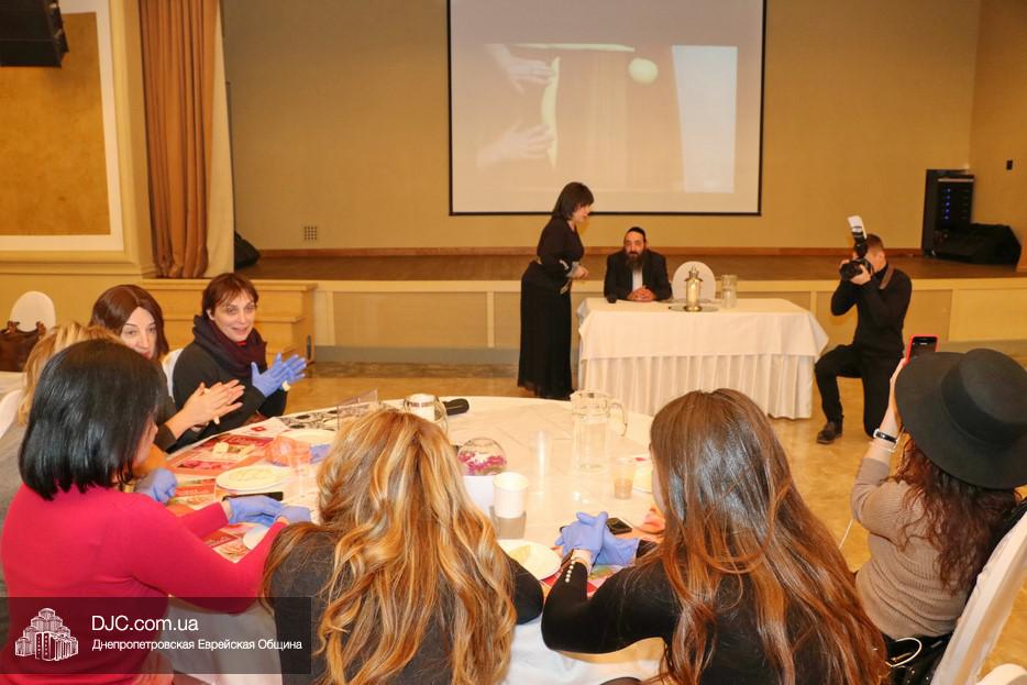 После того, как халы были сплетены, официанты собрали их для выпечки, а всем участницам принесли вкусное угощение. Дабы и этот процесс приносил не только удовольствие, но и пользу, пока халы выпекались, женщины могли прослушать увлекательную лекцию раввина Давида Альтмана о снах и сновидениях с кабалистической точки зрения, а когда халы подрумянились и были готовы, каждой участнице была вручена не сделанная ею хала, а одна из хал проекта, ибо и в этом тоже есть глубокий смысл – ибо все участницы «Баалей Тшува» как одна большая семья, делящаяся друг с другом благословением, любовью и радостью распространения света заповедей.