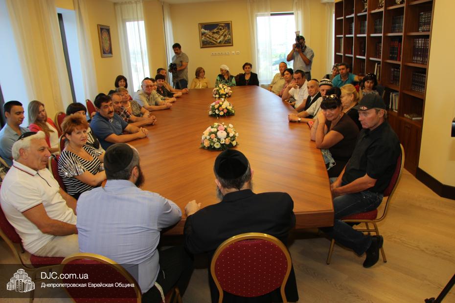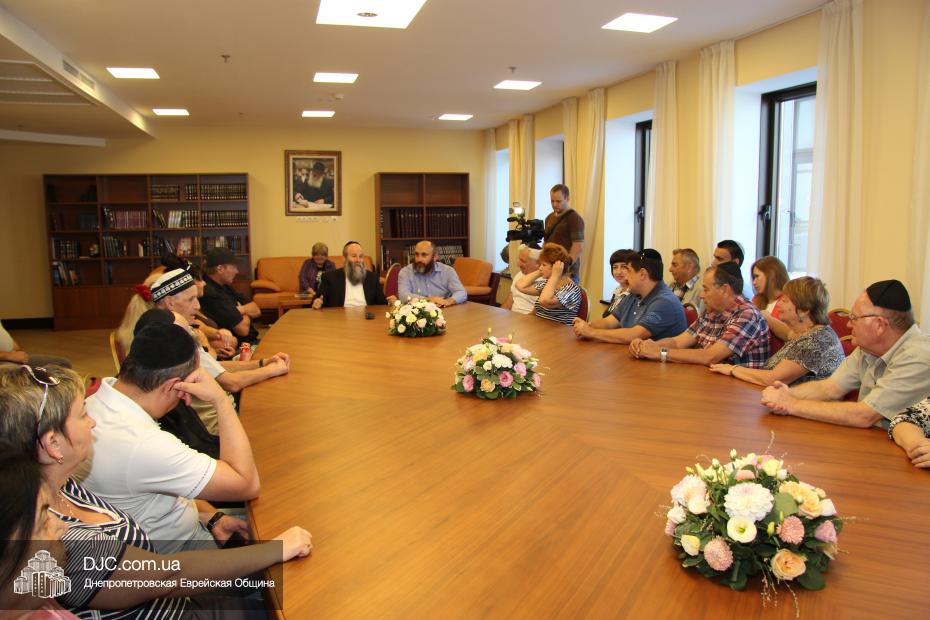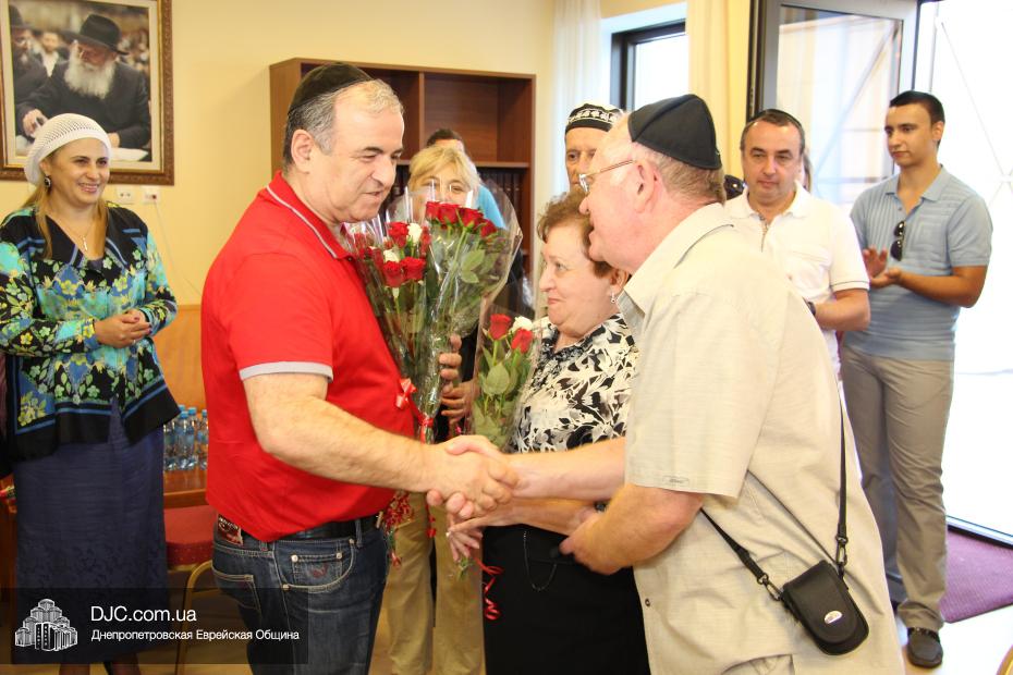 Для участников программы «Шатры Израиля», в рамках которой в Днепропетровске в будущее воскресенье одновременно станут под Хупу восемнадцать пар различного возраста (в основном уже имеющие большой стаж семейной жизни), прошел торжественный прием в офисе Главного раввина Днепропетровска и региона Шмуэля Каминецкого.