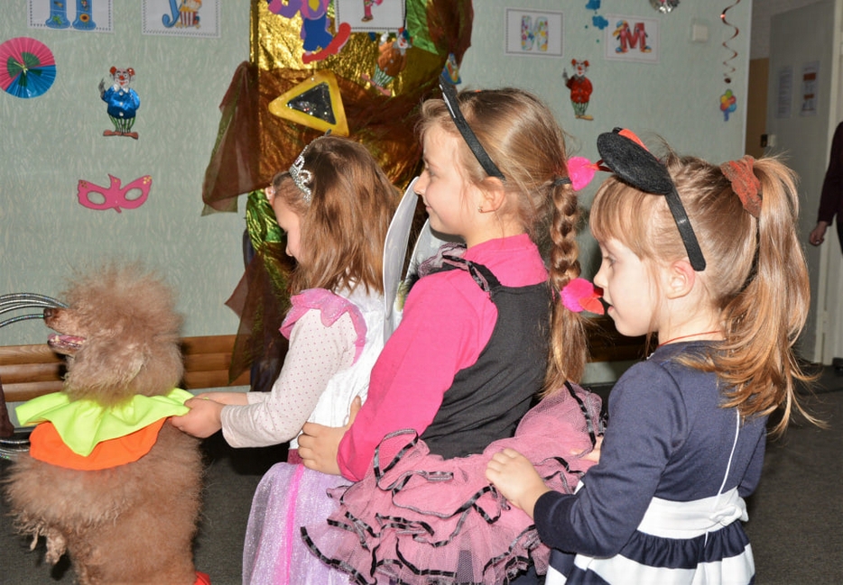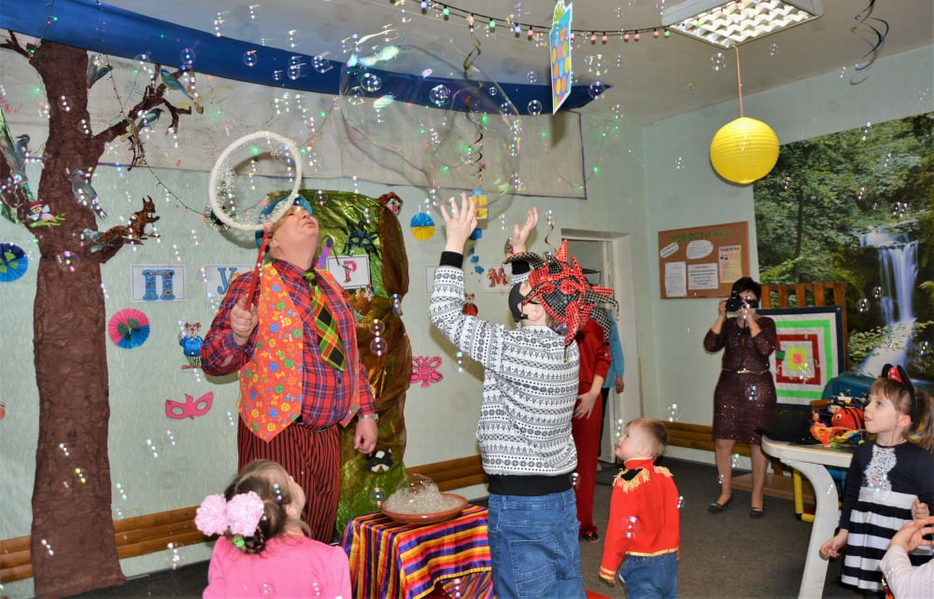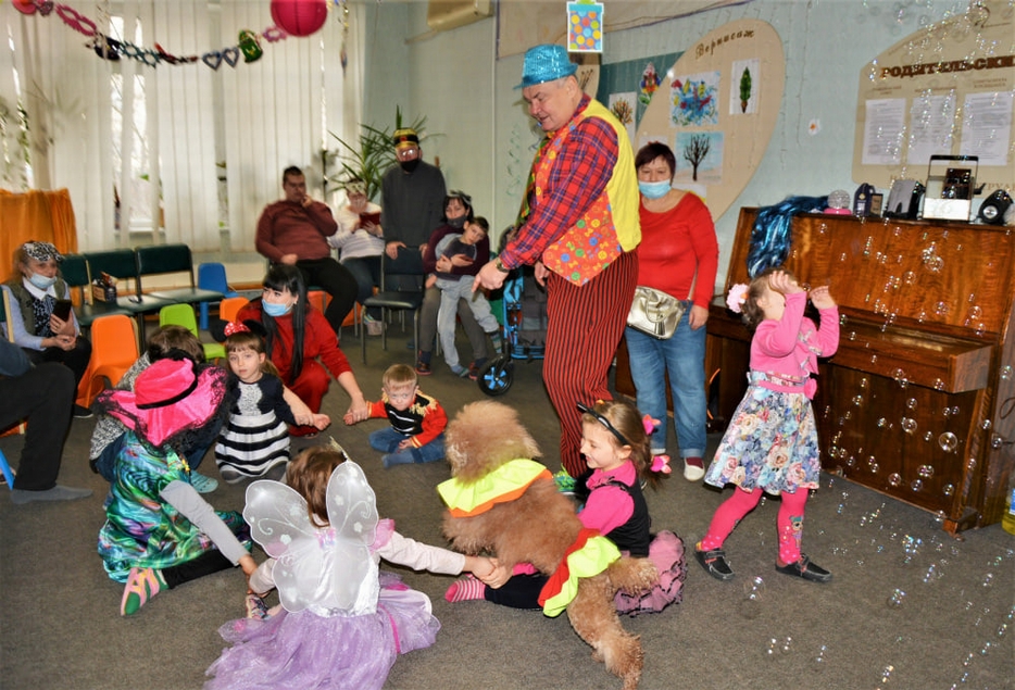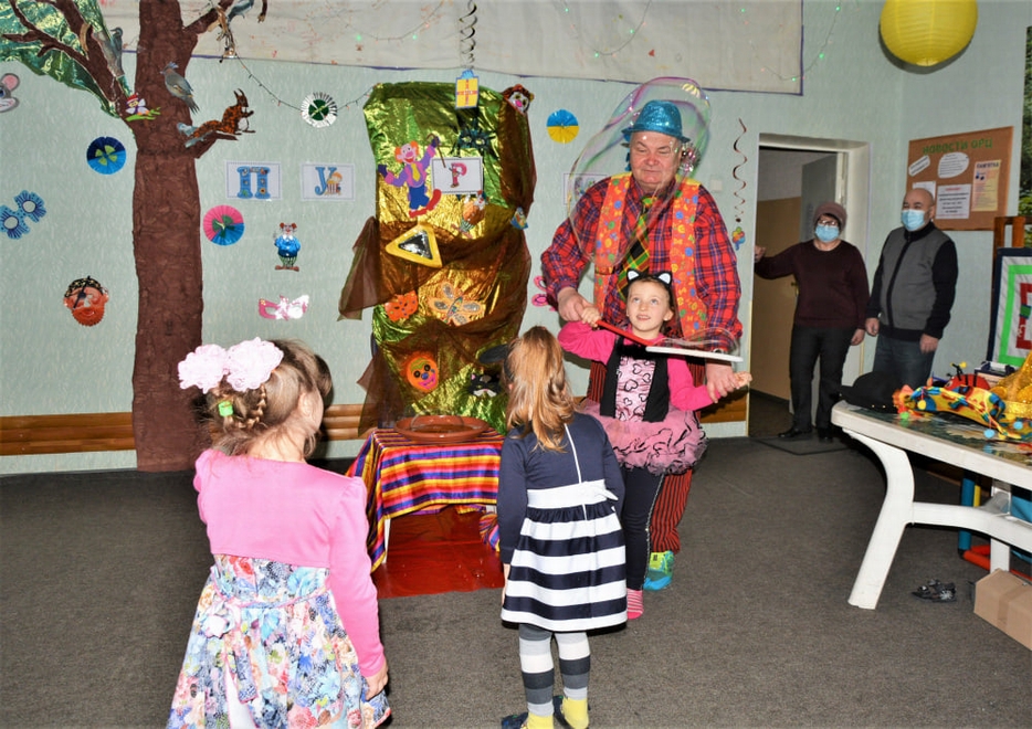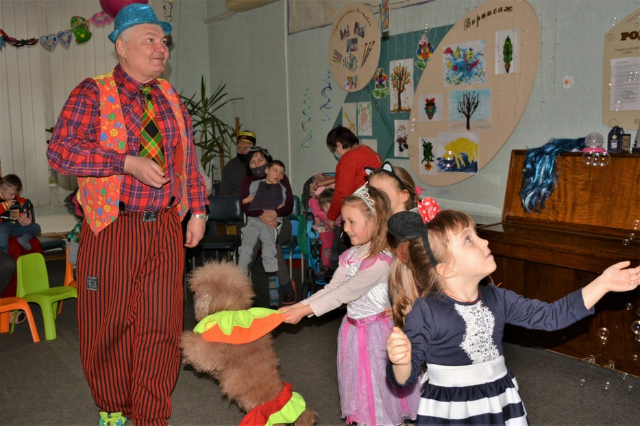 Кульминацией Пурима стало выступление клоуна с дрессированными собачками и шоу мыльных пузырей. Выступления Руслана Комара – яркие, запоминающиеся, приводят в неописуемый восторг детей и взрослых. Малыши обожают этого добродушного великана в жилетках и брюках немыслимых расцветок и его пушистых ассистенток – пуделей Аришу и Терри. В Ресурсном центре он всегда желанный гость, а его выступления – это настоящий праздник радости и веселья!».