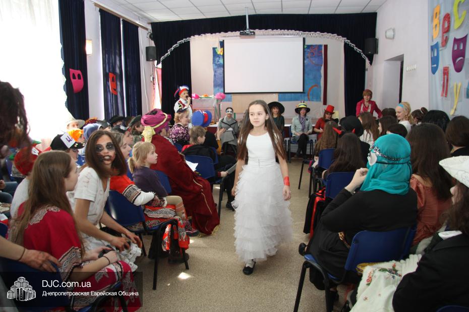 После того, как свои праздничные образы продемонстрировали старшеклассники, «дефилировать» в пуримских карнавальных костюмах были приглашены ученики младших классов. Для них дефиле проходило по тем же правилам, что и для взрослых ребят, которые в это время отправились в столовую на праздничную трапезу.