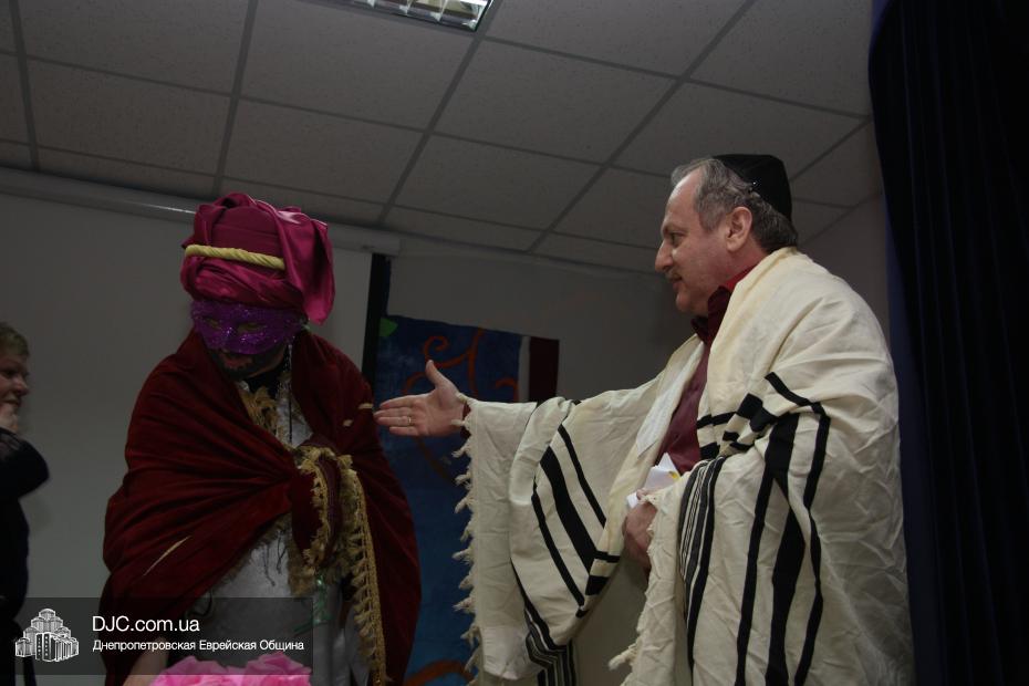 Грандиозным завершением серии праздничных мероприятий, посвященных Пуриму-5774, стал костюмированный спектакль для всех учеников школы, который организовали и отыграли их педагоги. В этом году пуримшпиль проходил в стилистике легендарных советских кинокомедий и телепередач, ибо для музыкального оформления использовались песни из тележурнала «Ералаш» и таких популярных фильмов как «Иван Васильевич меняет профессию», «Кавказская пленница» и другие. Как и полагается каждому пуримшпилю, этот праздничный спектакль, рассказывавший об истории праздника Пурим и подвиге царицы Эстер, получился красочным, ироничным и задорным, а невероятно артистичных актеров, сыгравших в нем, публика наградила множеством аплодисментов.