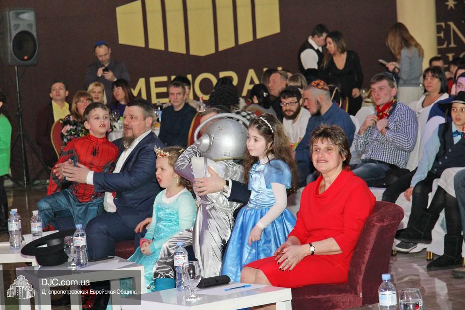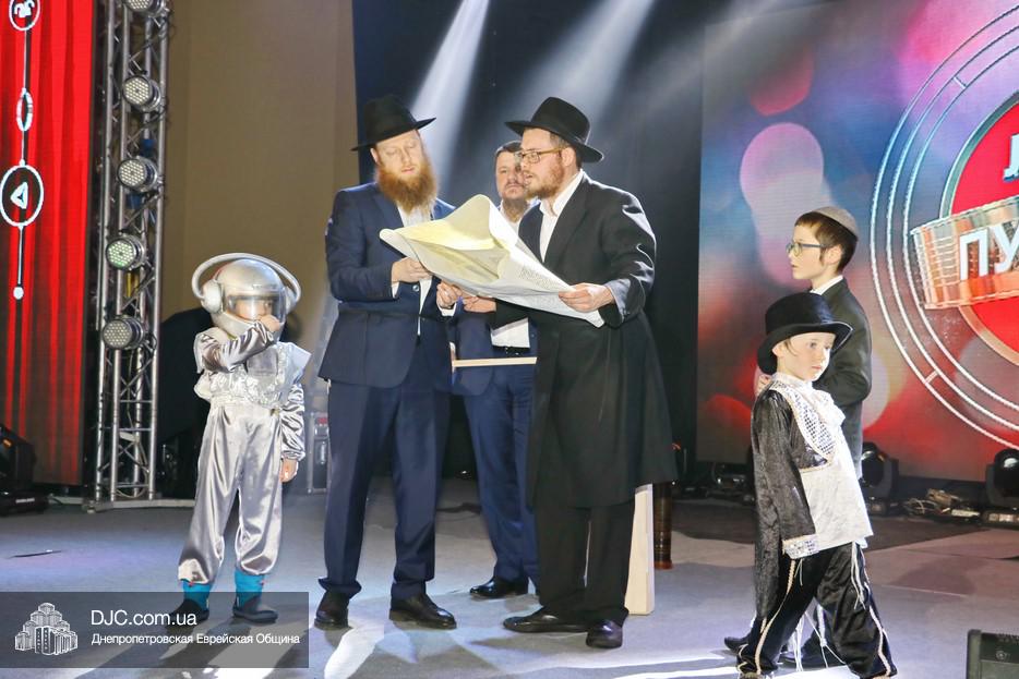 Открыло праздник выступление учеников младшей школы в карнавальных костюмах, которое было ярким, красочным и запоминающимся. Официальные приветствия и поздравления с Пуримом прозвучали от Главного раввина Днепра и региона Шмуэля Каминецкого и председателя правления STL Дана Макогона, а затем Свиток Мегилат Эстер прочитал раввин Мойше Нойман.