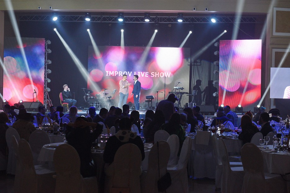 На вечеринке выступили в качестве специальных гостей группа комиков «Improv live show», куда вошли члены жюри ранее проходившего конкурса еврейских команд КВН «Лига Пурим» (подробнее об этом наш писал здесь), но главной звездой вечера был популярный исполнитель Мойше Пинхас Малой, известный под сценическим псевдонимом – Мачете.