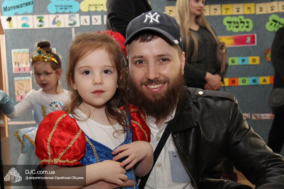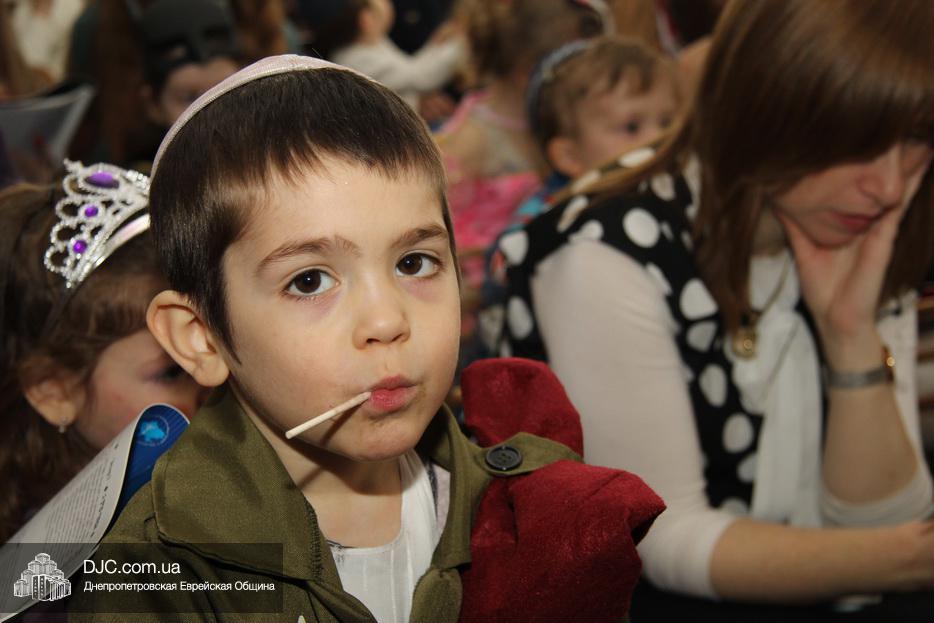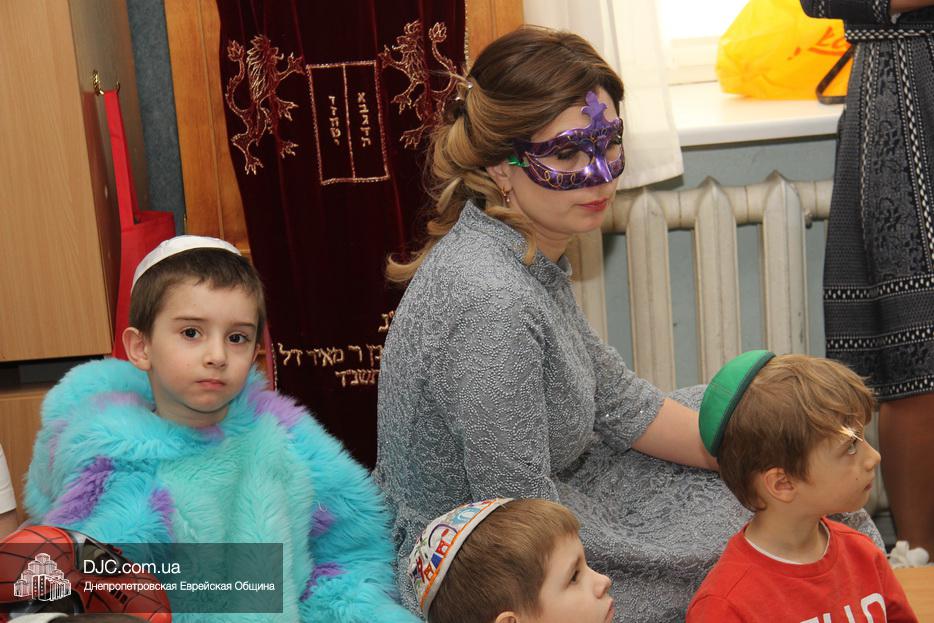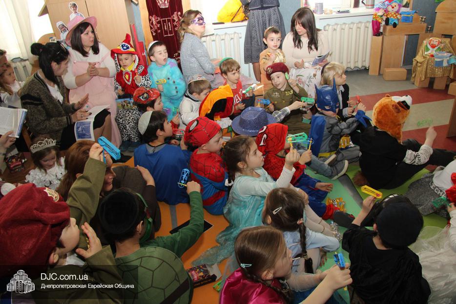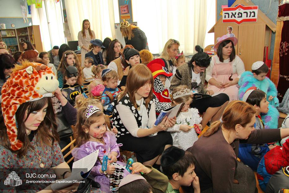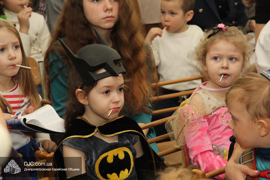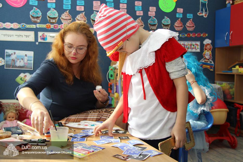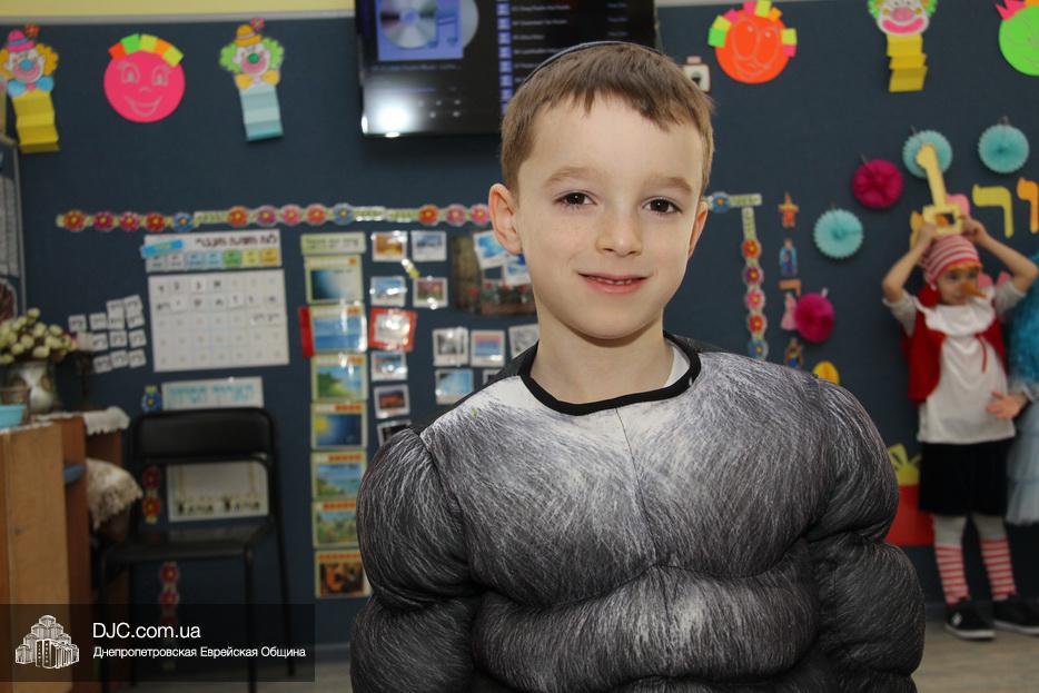Главное, конечно же, было чтение Свитка Эстер, которое проходило для детей и родителей. Группы разделили на две части: пока в старших группах читали Мегилат Эстер, младшие группы смотрели выступление клоуна, затем произошла ротация, так, чтобы каждый ребенок услышал Мегилу, и чтобы каждый ребенок посмотрел праздничное представление – очень яркое, красочное и интересное.