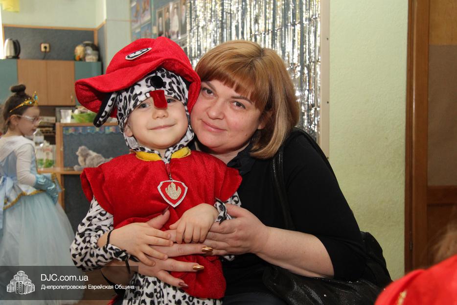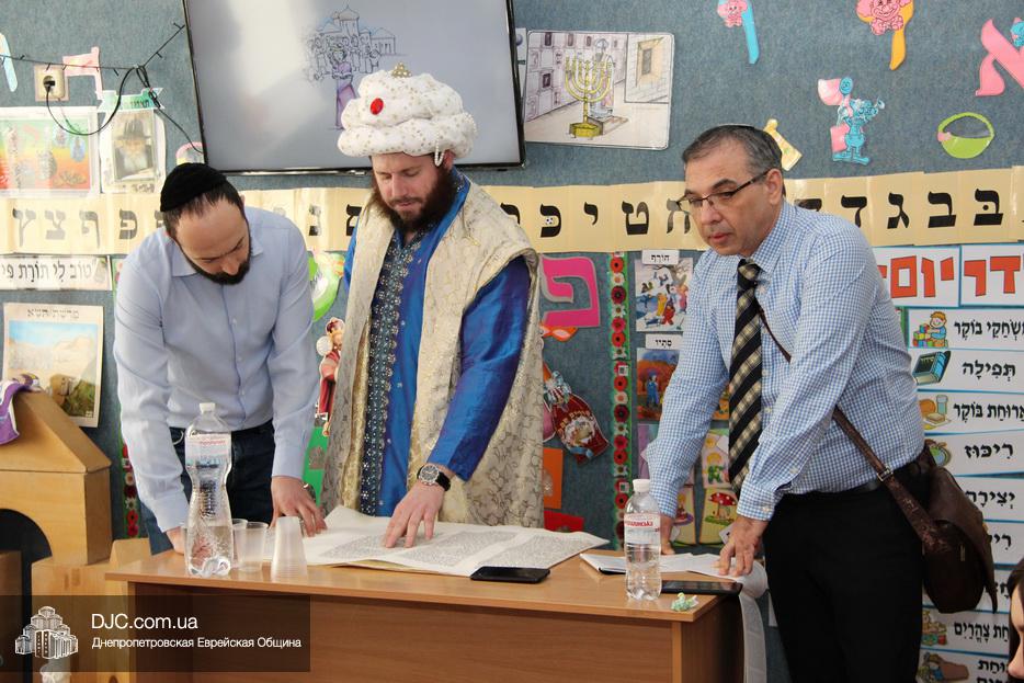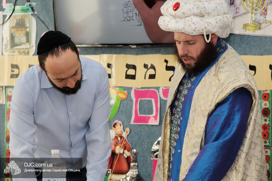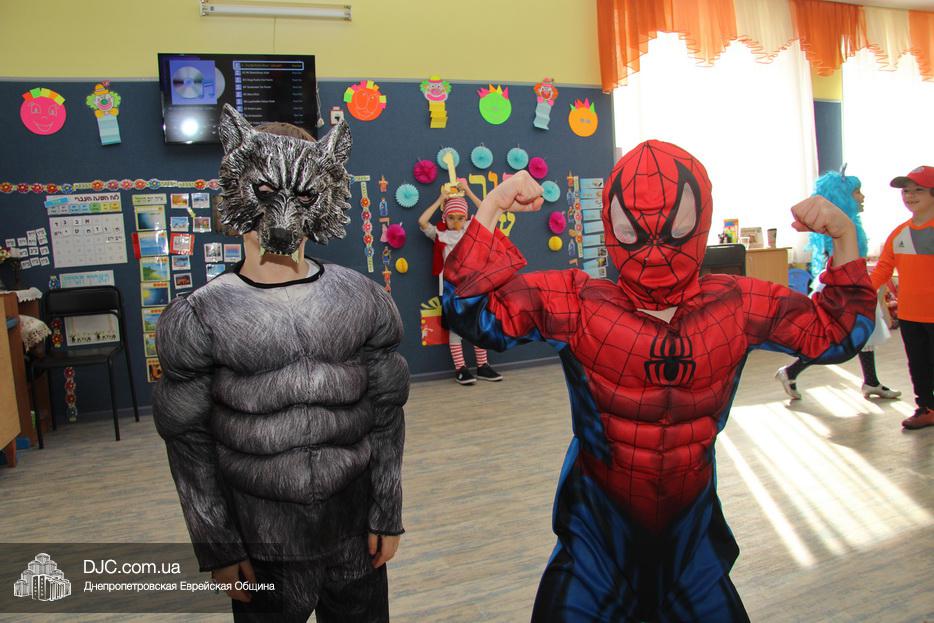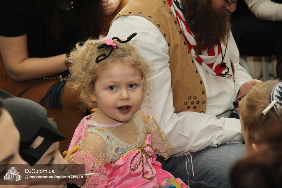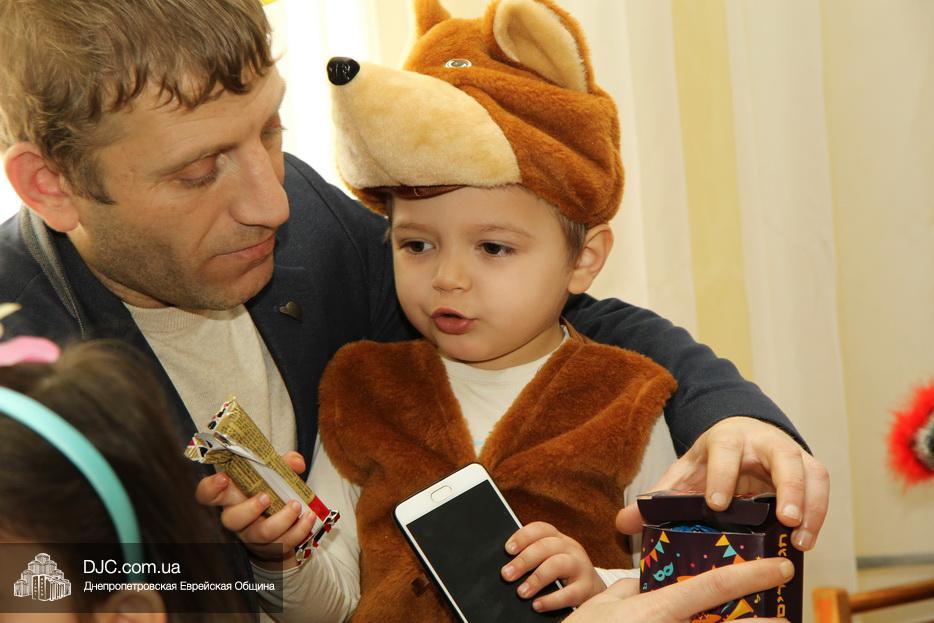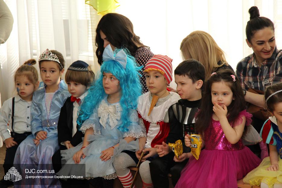 Главное, конечно же, было чтение Свитка Эстер, которое проходило для детей и родителей. Группы разделили на две части: пока в старших группах читали Мегилат Эстер, младшие группы смотрели выступление клоуна, затем произошла ротация, так, чтобы каждый ребенок услышал Мегилу, и чтобы каждый ребенок посмотрел праздничное представление – очень яркое, красочное и интересное.