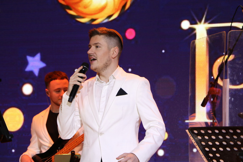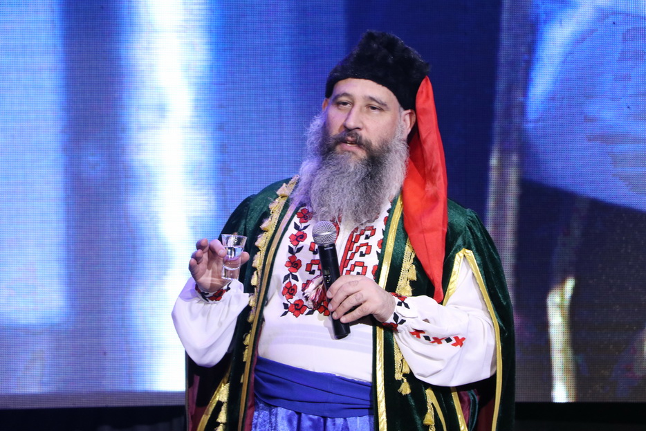Ведущий праздничного вечера Виталий Азаров объявлял артистов и почетных гостей праздника, создавая атмосферу веселого Пуримского пира.