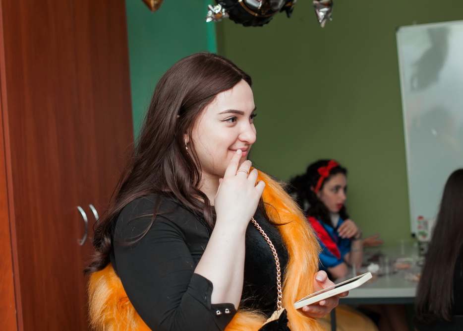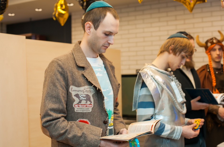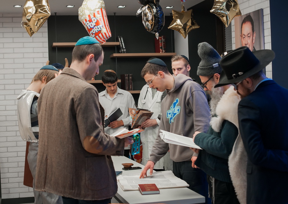 В честь этого замечательного праздника все наше пространство было украшено и разделено на зоны, кроме фуршетной, была фотозона, так как многие ребята пришли, как и положено, в карнавальных костюмах, они смогли запечатлеть себя на память. Также мы отделили зону, где читали свиток Мегилат Эстер. И следует отметить, что перед началом чтения преподаватель нашего проекта Ципора Шуфотинская провела небольшое занятие для наших студентов, напомнив им законы и правила, как надо слушать Мегилу, чтобы они знали, какие благословения читаются, что нужно повторять, а где необходимо шуметь.