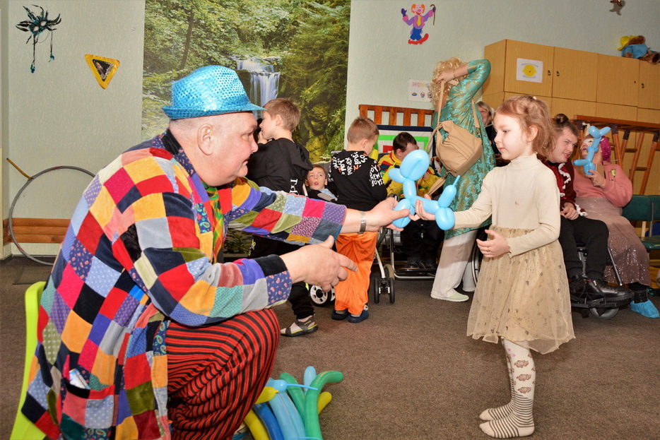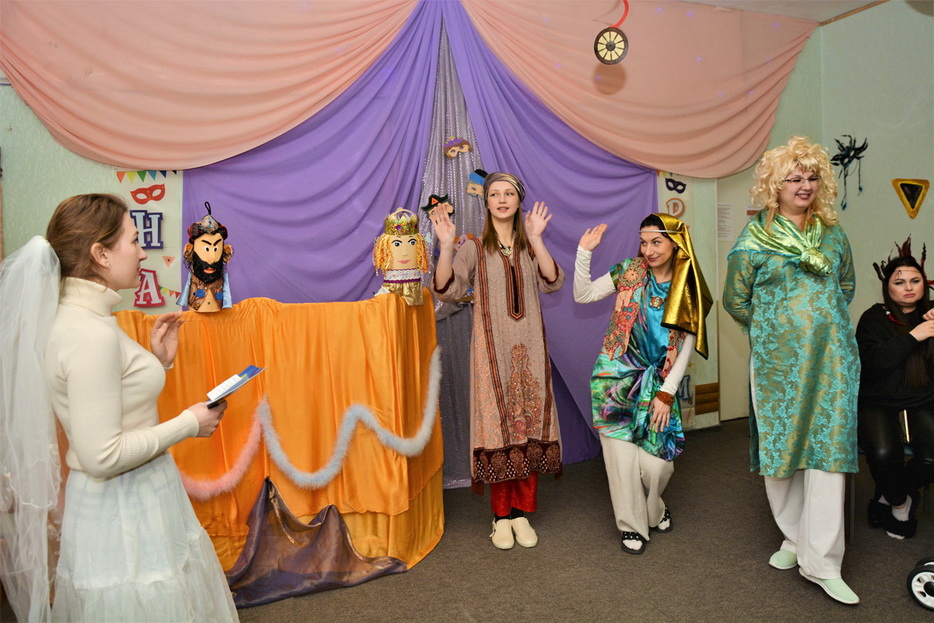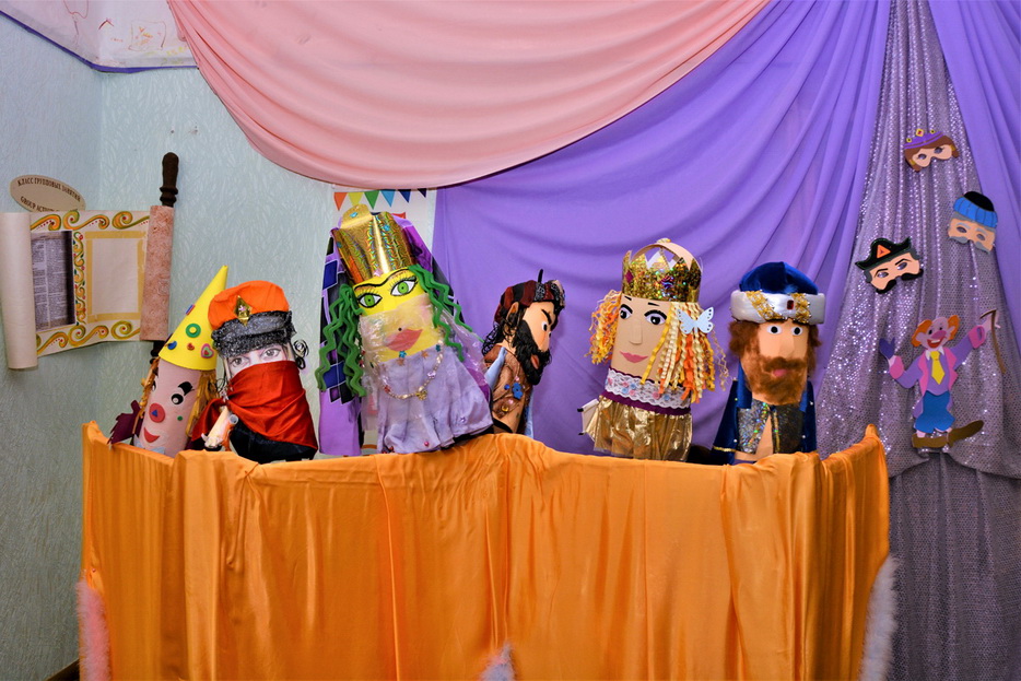 «Цього дня в ОРЦ панувала особлива атмосфера, приміщення Центру було яскраво декоровано до свята, – рассказала нашему сайту методист Центра Елена Овчаренко, – корекційний педагог Людмила Навротська створила виразну драпіровану композицію на авансцені лялькового театру, а співробітники за допомогою батьків розвісили гірлянди, різнокольорові кулі та атрибути Пуріма.