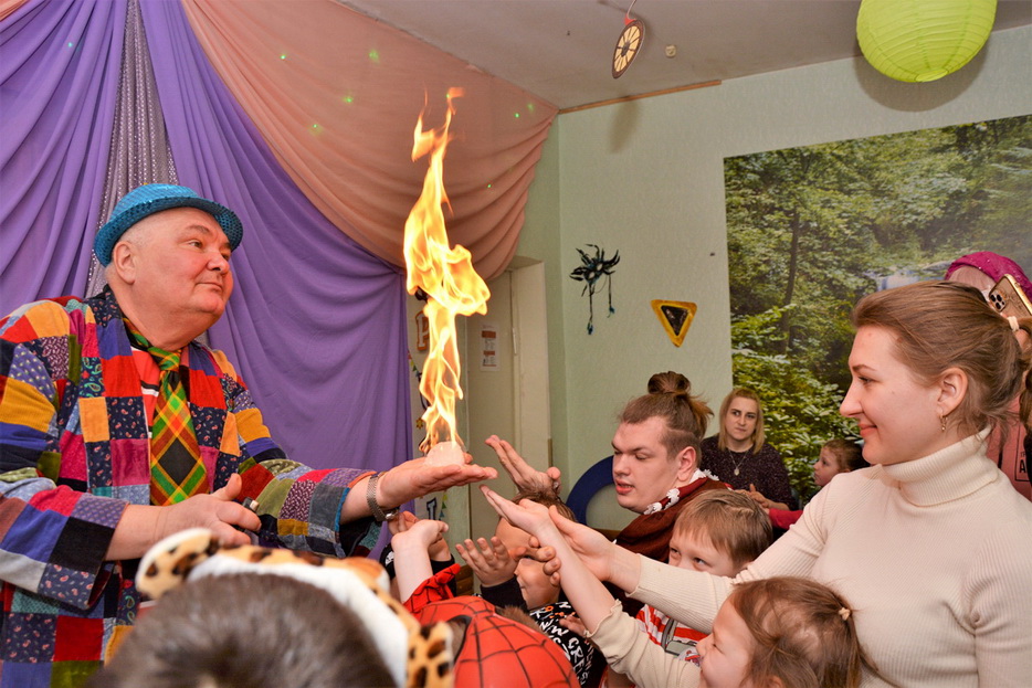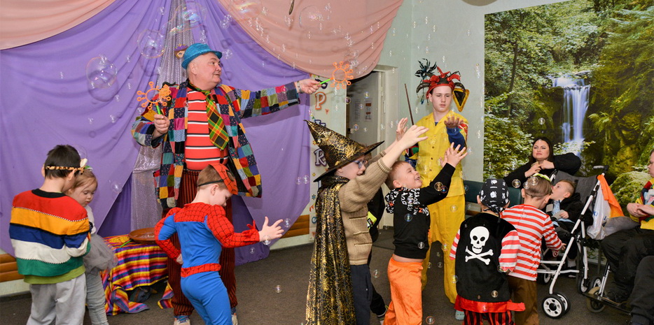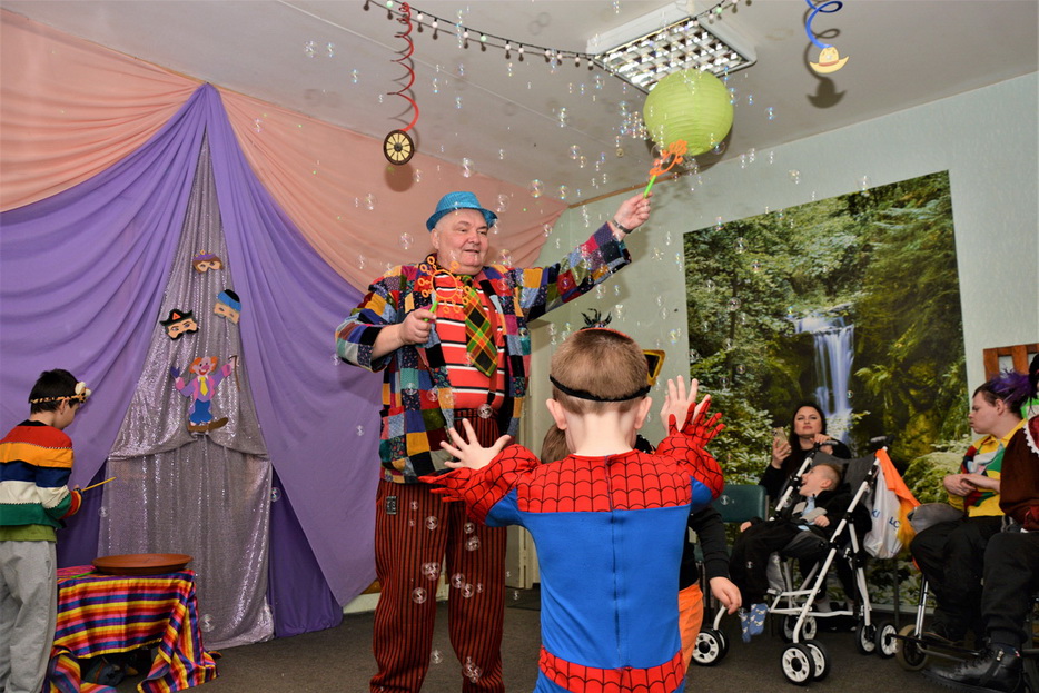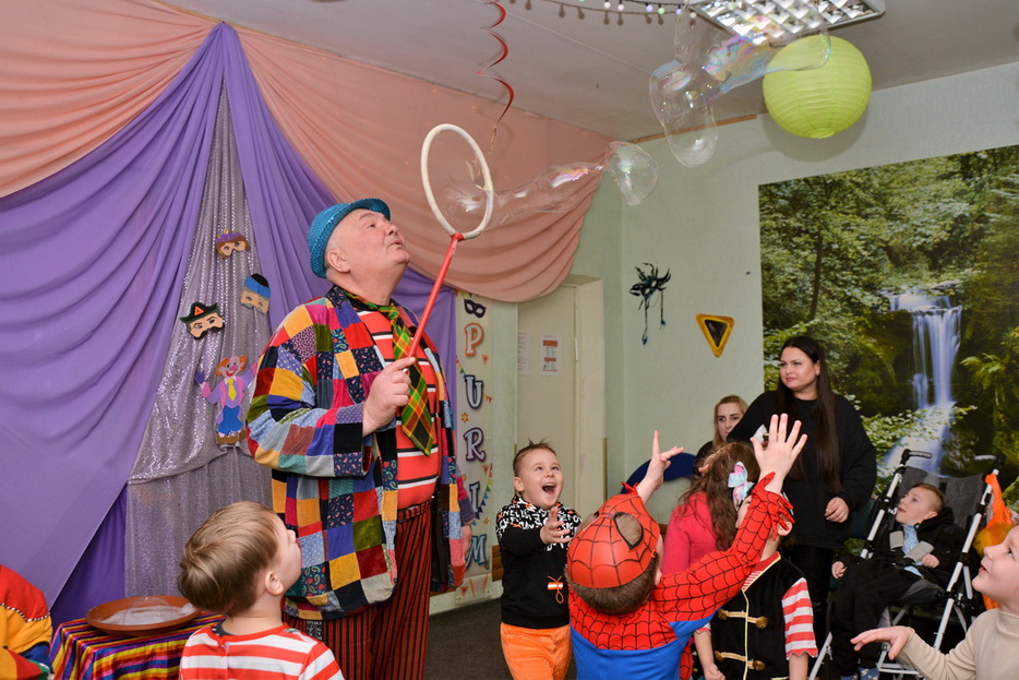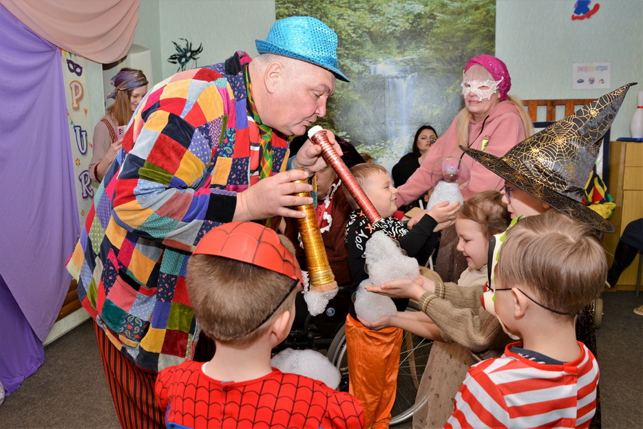 На карнавал до нас приїхав Руслан Комар – артист-ексцентрик, улюбленець дітей та давній друг Центру. Цей веселий добродушний велетень щоразу готує для дітей незвичайні атракціони, несподівані фокуси та незабутнє видовище. Цього разу це було шоу мильних бульбашок та фокуси з повітряними кульками.