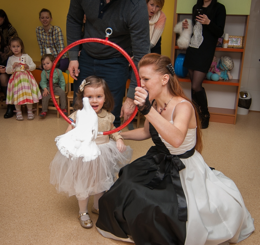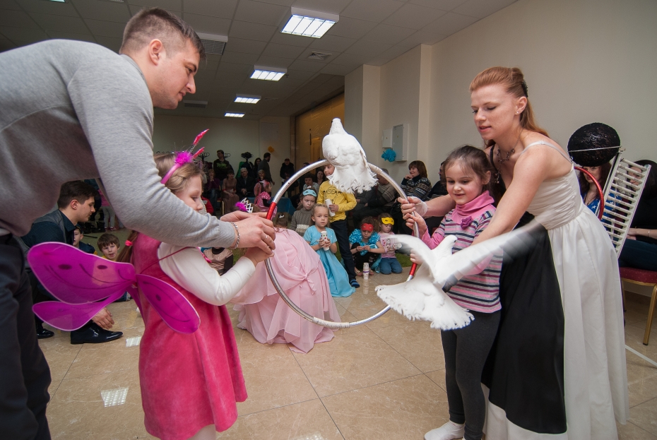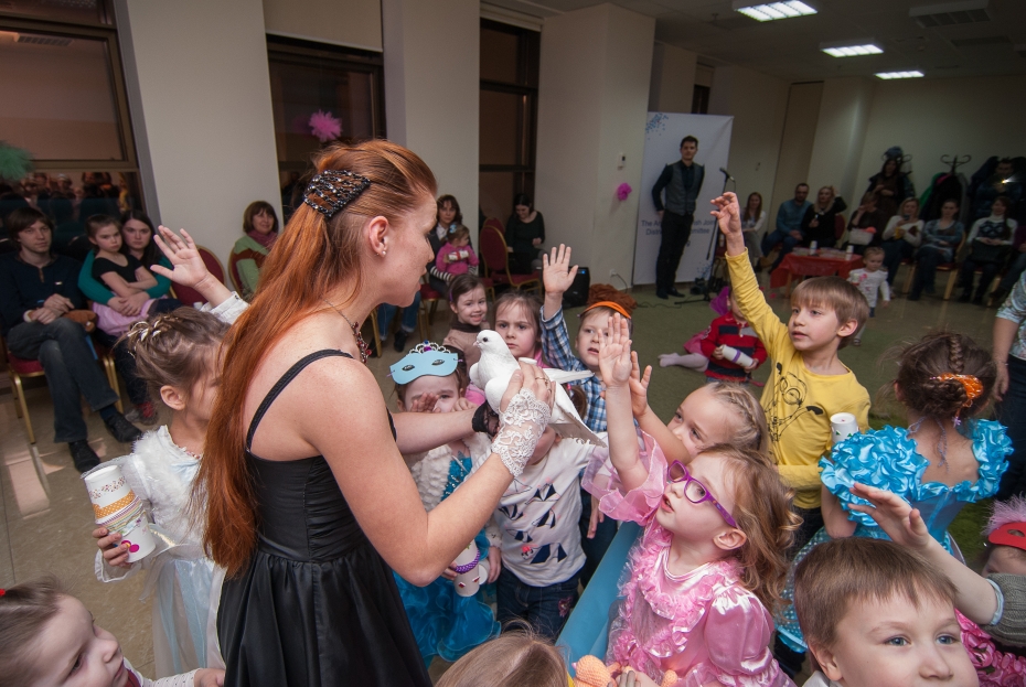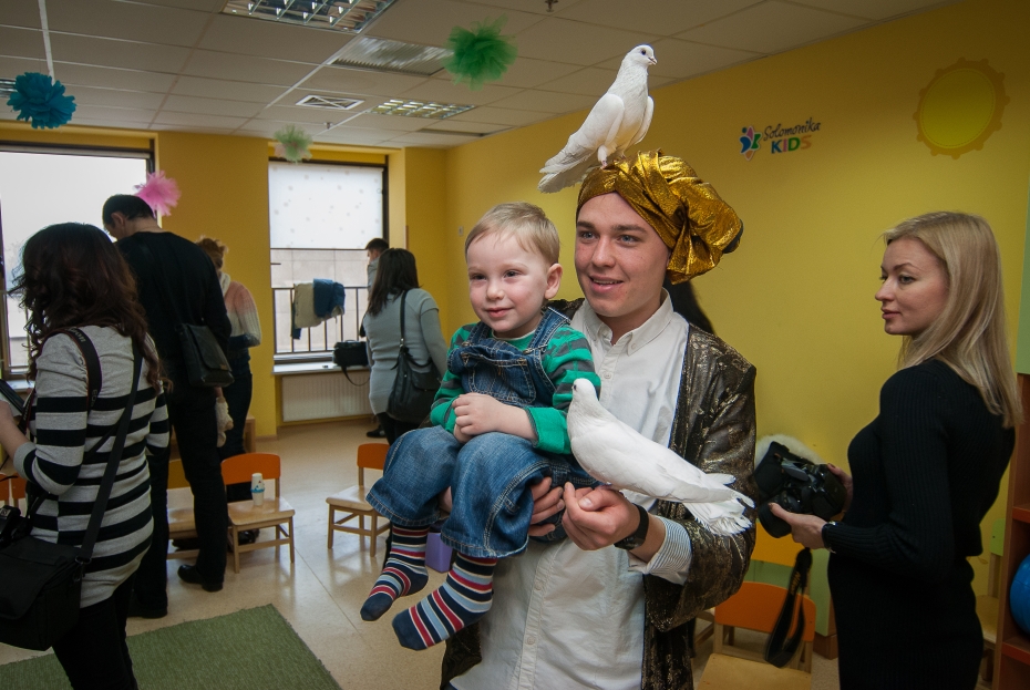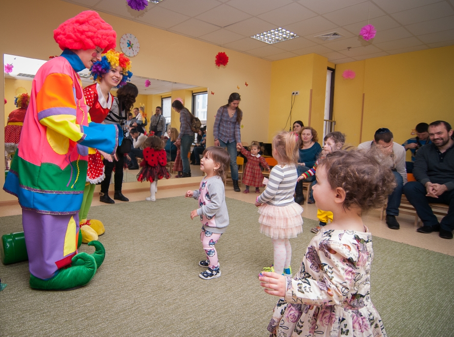 Много мероприятий на Пурим было проведено для детей разных возрастов, причем, кроме большого представления в зале «Menorah Ballroom», было проведено мероприятие для детей с трех до пяти лет, в конференц-зале Галереи центра «Менора», и специальный праздник для самых-самых маленьких, от полутора до трех лет. Всего в малышовых Пуримах приняло участие почти 50 детей, для которых было подготовлено специально адаптированное пуримское представление с клоунами и дрессированными голубями, которые помогли преодолеть смущение и застенчивость даже у самых робких. В ходе праздников в игровой форме рассказывалось об истории праздника, о еврейских традициях и специальных обрядах Пурима.