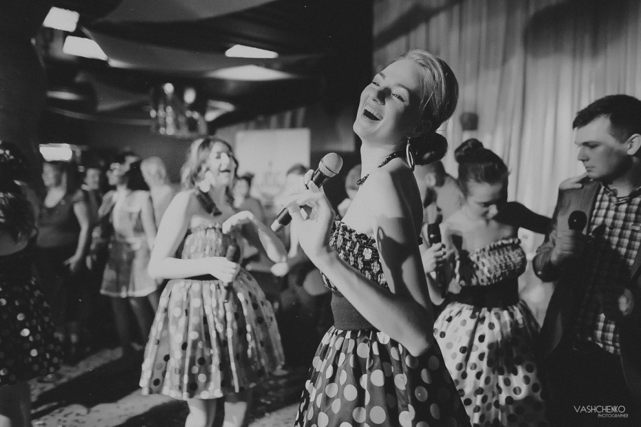 Как рассказала нашему сайту Хагит Мануйлова: «В программе вечера «Стиляги из Днепра» были различные конкурсы от ведущего – на лучший стиляжный костюм и прическу, выбор лучшей пары танцевальной вечеринки, а также мастер-класс по танцам буги-вуги и твист. Не обошлось в этот раз без пародий, и гвоздем программы был Элвис Пресли, которого замечательно спародировал артист оригинального жанра Евгений Приходько. На танцполе в ярких нарядах зажигали участники вечера. Пару сотен человек в эту ночь прониклись любовью к свободе и страстью к цвету. Музыка в этот раз поражала танцпол своим разнообразием – помимо традиционных для всех стилей музыки из динамиков доносилась отборная порция рок-н-ролла, диско и других ретро-ритмов! А взрывал танцпол своим пением «Концепт Хор Харизма».