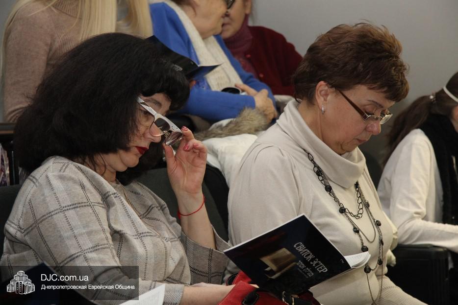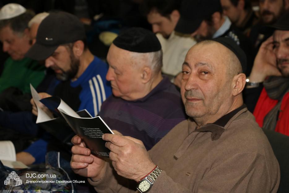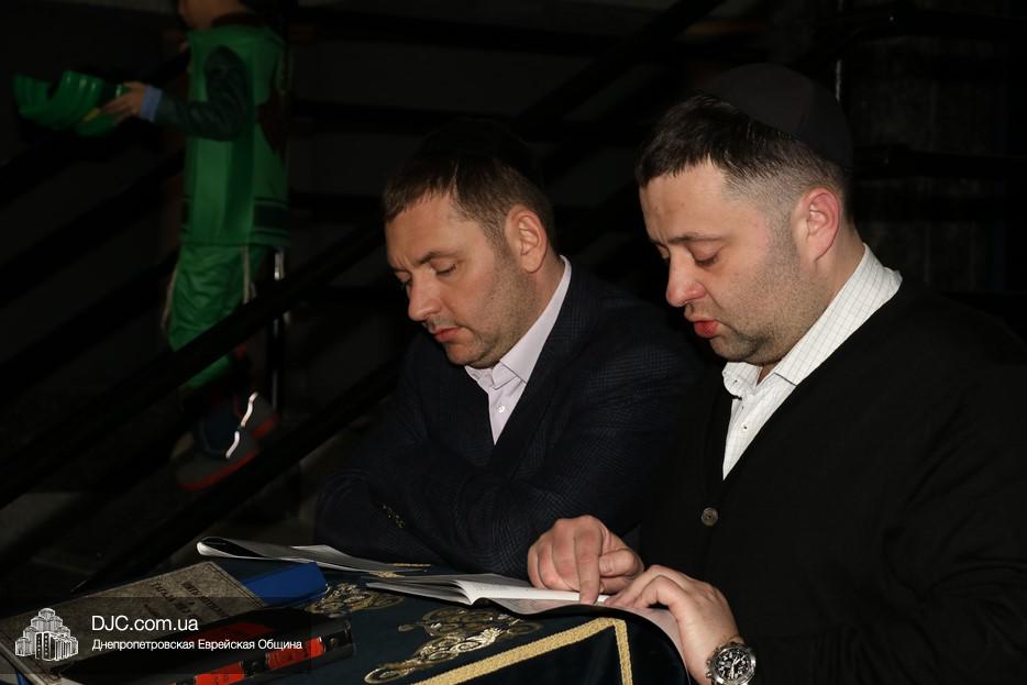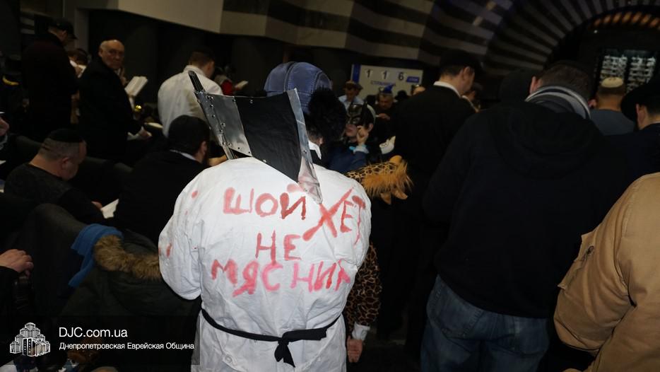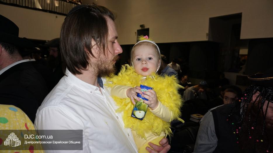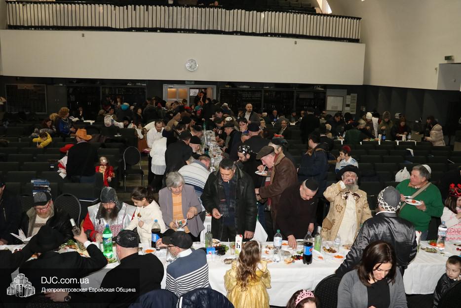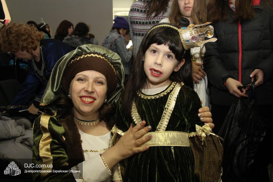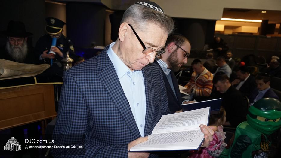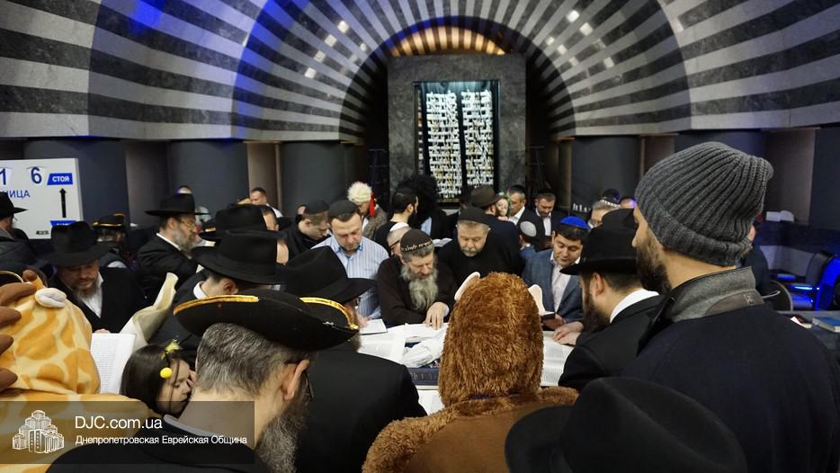 На вечернее чтение Свитка пришли сотни евреев Днепра и атмосфера в зале была весьма необычной не только потому, что многие – как взрослые, так и дети – были в карнавальных костюмах, но и потому, что у восточной стены, слева от Арон Кодеша расположился оркестр, который еще до начала чтения создавал пуримскую атмосеру, играя веселые еврейские мелодии.