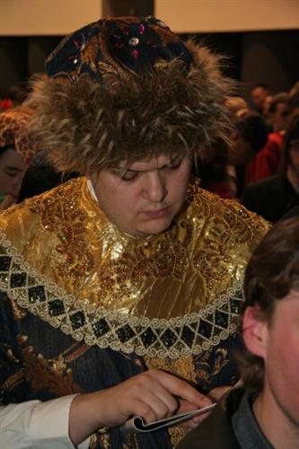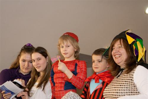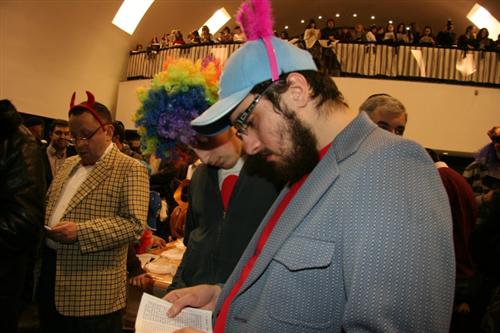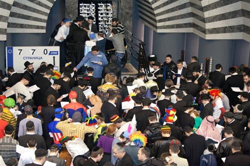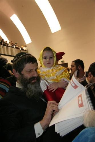 Как всегда, был переполнен молитвенный зал, как всегда, многие, не только дети, но и взрослые, были в карнавальных костюмах, и по синагоге разгуливали короли, вельможи, шотландские горцы, запорожские козаки в тюбетейках, человеки-пауки, офицеры, пираты, мотыльки, принцессы, феи и так далее, и так далее. Нововведением этого года стали двойники, причем, не только Владимира Путина, но и других популярных в общине людей. Например, в зале было три Мойше Вебера, двое Акив Романовских, и появление таких дублей повеселило всех, в первую очередь, оригиналов.