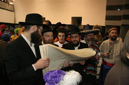 Читал Мегилу раввин еврейского женского педагогического колледжа «Бет Хана» Мойше Вебер, а все присутствующие тщательно следили за этим процессом по печатным и рукописным текстам, внимательно слушая каждое слово, а в положенных местах поднимали оглушительный шум, дабы заглушить имя проклятого Амана, и в ход шли дудки, трещотки, специальные хлопалки, а также топот, свист и другие способы создания акустического удара.