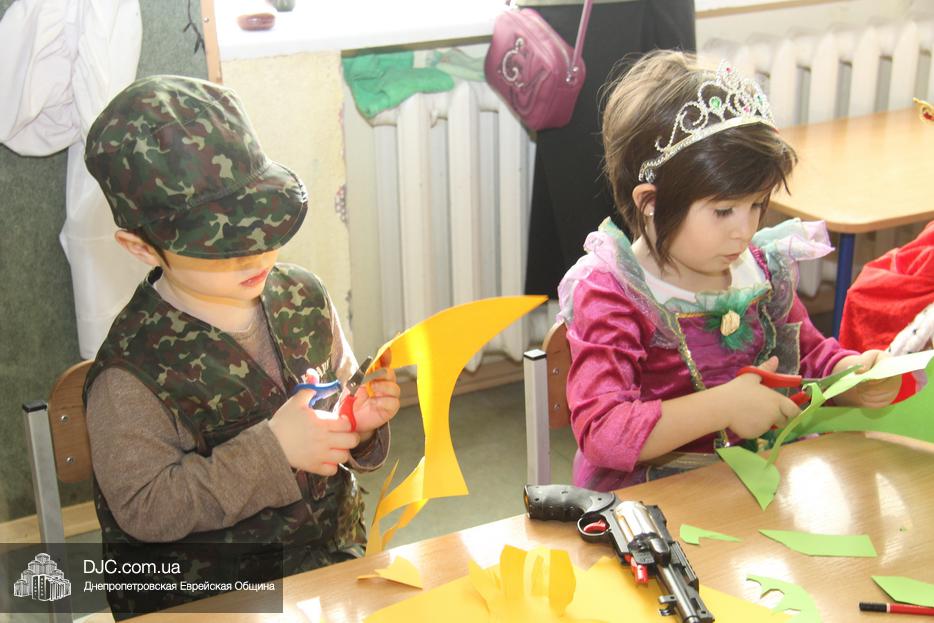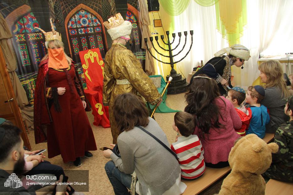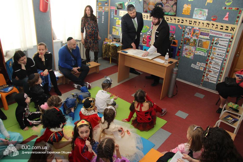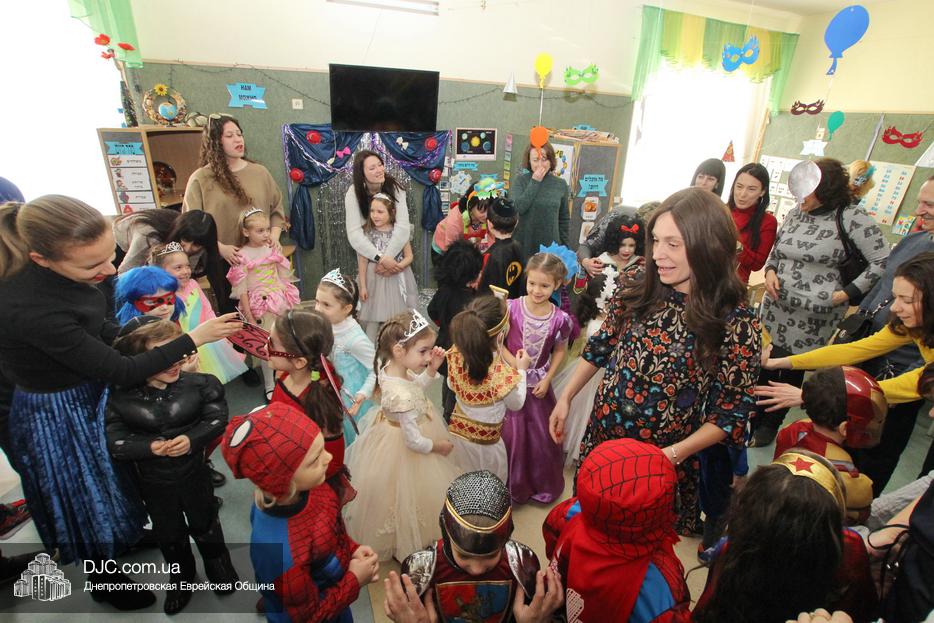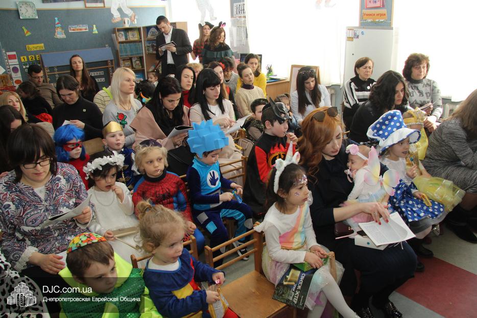 Главное, конечно же, было чтение Свитка Эстер, которое проходило для детей, родителей и воспитателей и в группах и в их объединениях. А пока в одних группах читали Мегилат Эстер, в других показывали Пуримшпиль, подготовленный творческими силами «Бейт Циндлихт», затем проходила ротация, так чтобы каждый ребенок услышал Мегилу и чтобы каждый ребенок посмотрел пуримское представление – очень яркое, красочное и интересное.