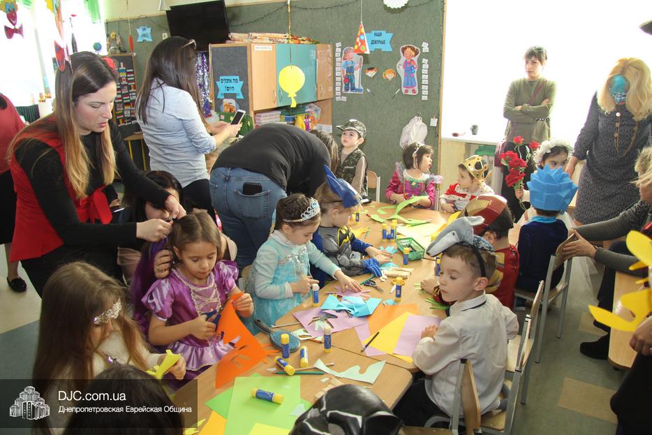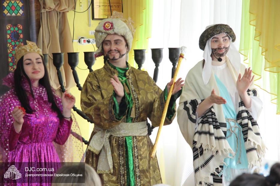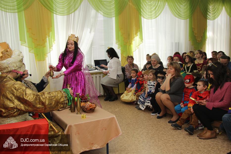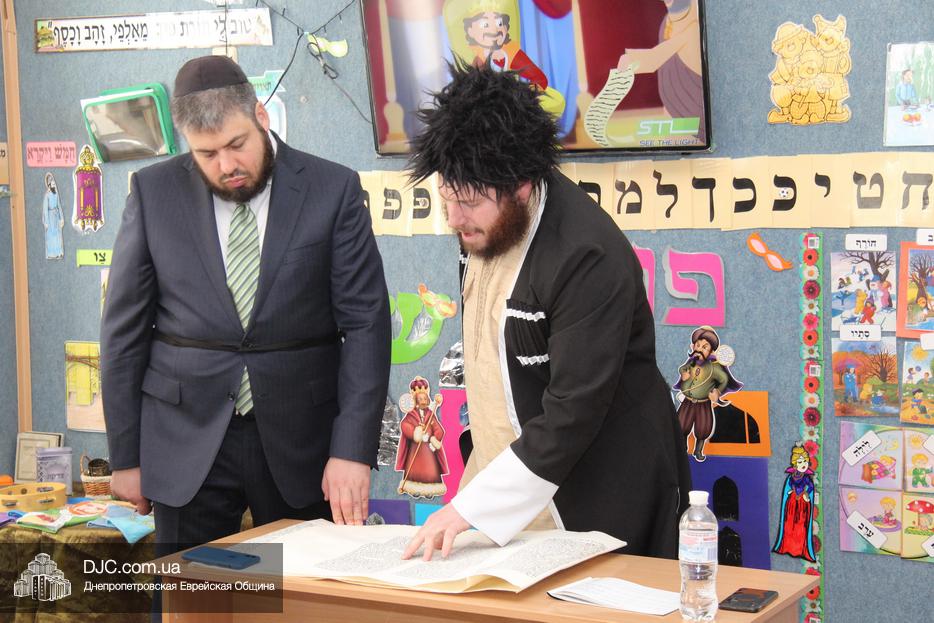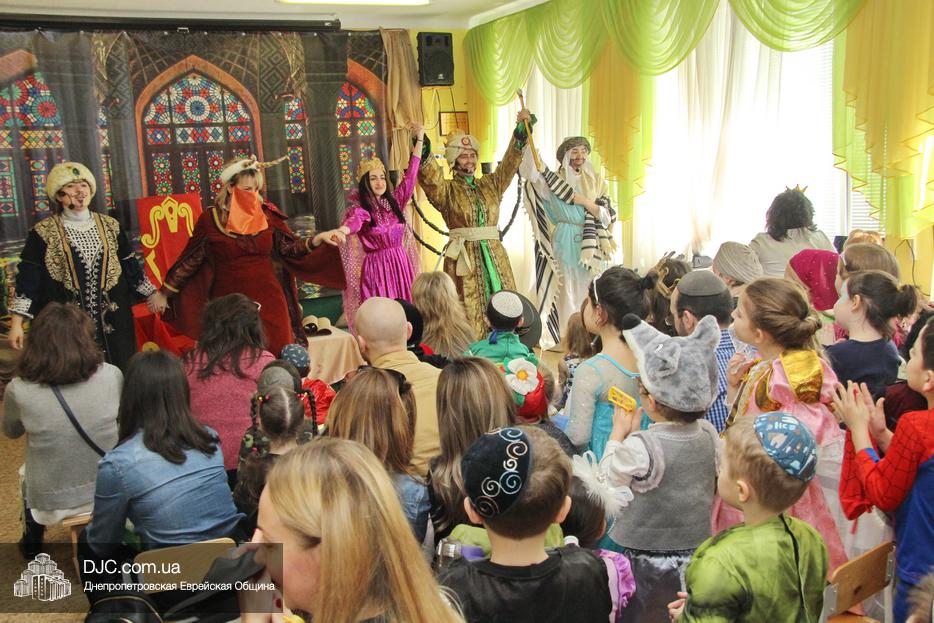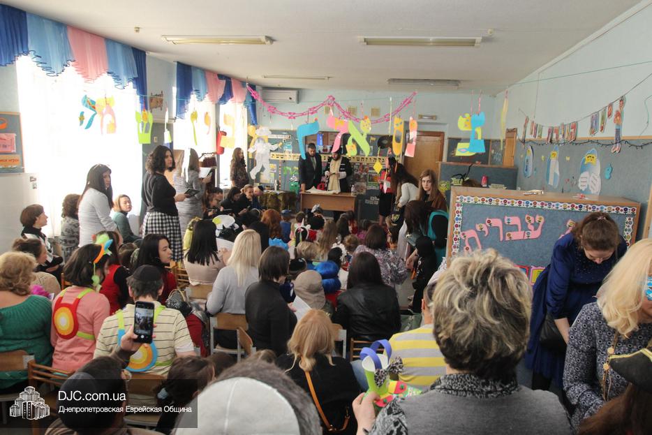 Главное, конечно же, было чтение Свитка Эстер, которое проходило для детей, родителей и воспитателей и в группах и в их объединениях. А пока в одних группах читали Мегилат Эстер, в других показывали Пуримшпиль, подготовленный творческими силами «Бейт Циндлихт», затем проходила ротация, так чтобы каждый ребенок услышал Мегилу и чтобы каждый ребенок посмотрел пуримское представление – очень яркое, красочное и интересное.