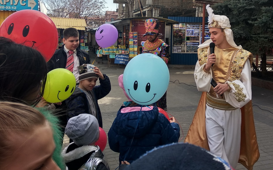 После спектакля, когда дети гурьбой высыпали на площадь Театрального проезда, волонтеры программы JBBBS вручили каждому улыбающийся шарик, и зазвучала веселая музыка, а когда дети подошли ее послушать появились герои пуримской истории и начались конкурсы, викторины, танцы и настоящее пуримское веселье. «Я очень рада, что и младшие и старшие так активно включились в этот перфоманс и получили от него большое удовольствие, — рассказала нашему сайту руководитель программы Татьяна Каплунская, — Пурим – праздник карнавала, праздник преображения, раскрытие внутренней сути, и мы постарались передать этот главный посыл Пурима в игровой и веселой форме».
